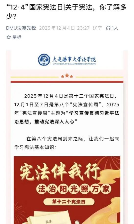 开展2025年国家宪法日“宪法晨读”主题团日活动