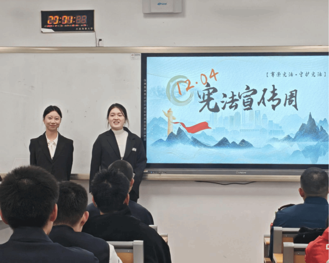12月4日,法学院组织本科各年级各班利用课余时间召开了“学宪法精神,做时代新人”主题班会,实现了本科生宪法学习全覆盖,深化了同学们对宪法核心要义的理解。