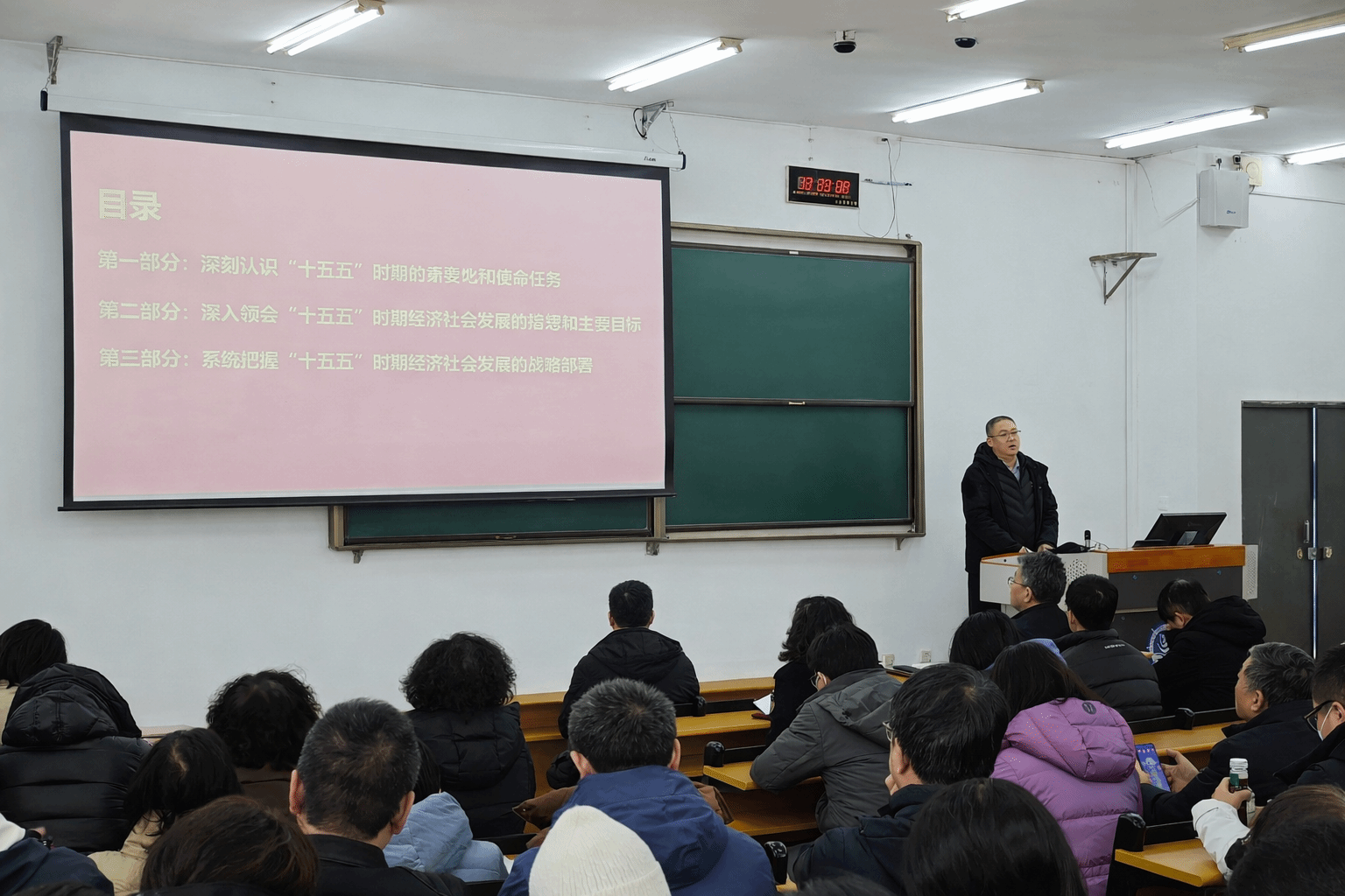 张罕育从深刻认识“十五五”时期的重要地位和使命任务、深入领会“十五五”时期经济社会发展的指导思想和主要目标、系统把握“十五五”时期经济社会发展的战略部署三方面进行讲授,并结合自身工作经历分享了学习体会,教育引导全院教工进一步提高站位,深入思考,将学习教育成果转化为实实在在的工作成效。