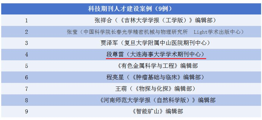 为进一步推进我国科技期刊高质量发展,多角度、多渠道展示我国科技期刊建设工作成就,中国高校科技期刊研究会联合新华网等媒体和机构,面向全国科技期刊以及与科技期刊有关的高校、协会、学会、科研机构、企业等公开征集典型案例。征集方向包含“科技期刊支撑重大科技创新成果案例、科技期刊驱动产业创新发展案例、科技期刊人才建设案例”等八大类。经专家和学者进行评议和遴选,全国共有9个案例入选“科技期刊人才建设案例”,其中个人案例6例、集体案例3例。入选该案例展现了我校期刊服务经济社会高质量发展的创新成效,彰显了我校期刊推进科技创新的蓬勃生机 和 突出实力。