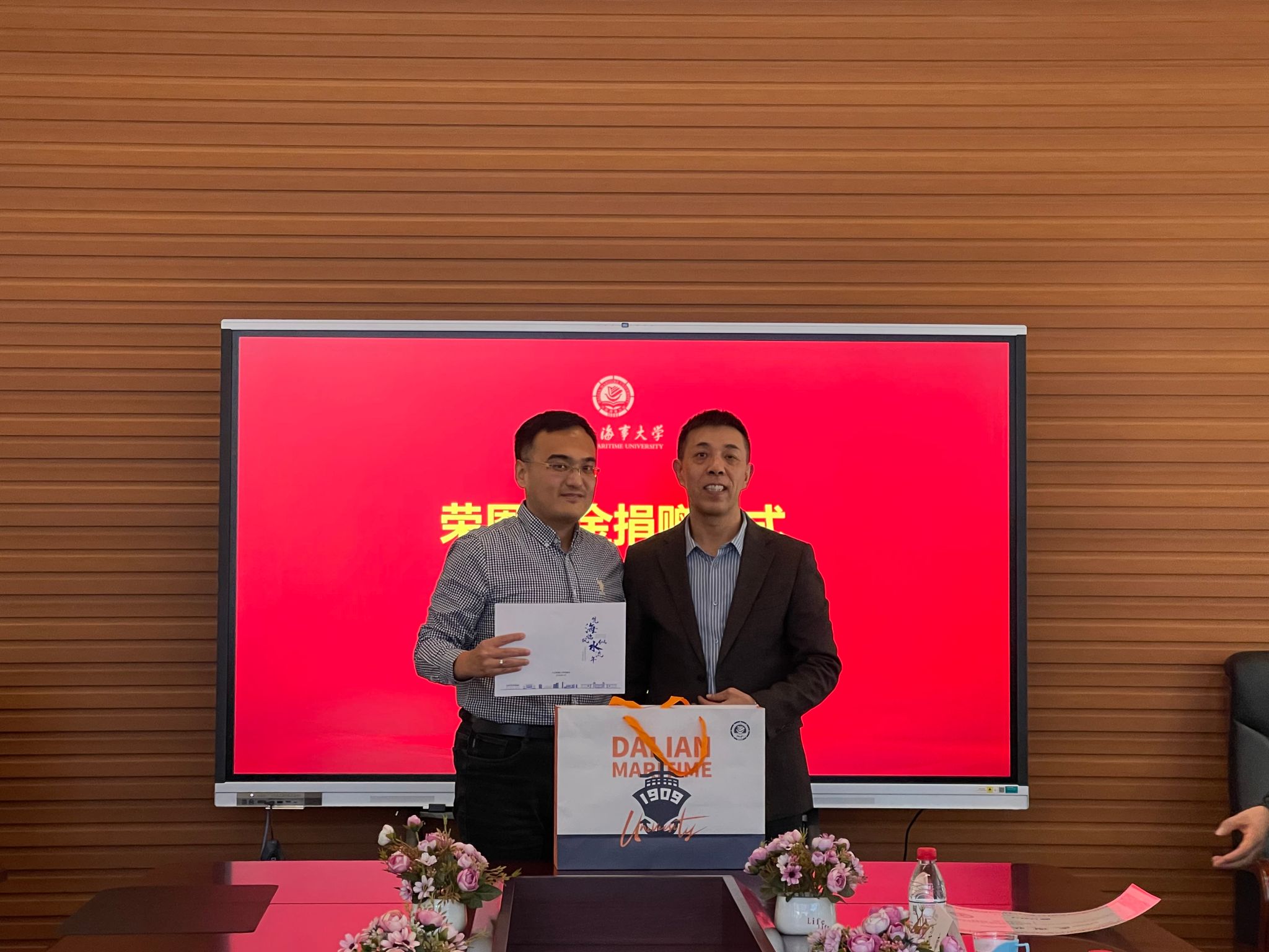 大连海事大学图书与档案馆馆长姚文兵代表学校对荣恩国际海运有限公司的支持与慷慨回馈表示衷心感谢。他表示,“荣恩基金”的设立,为海大讲解团的建设与发展注入了强大动力,学校将切实珍惜、善用这份捐赠,不辜负校友们对学校的大力支持,以实实在在的成果回应校友们的信任与期待。