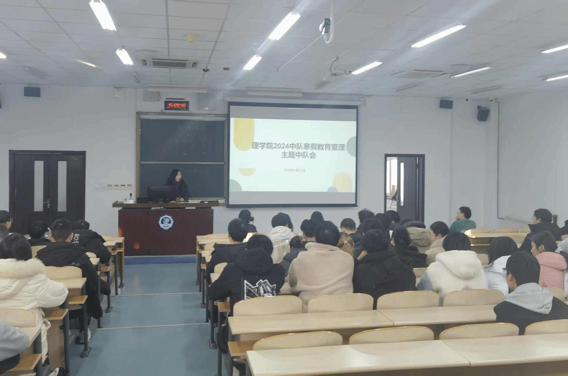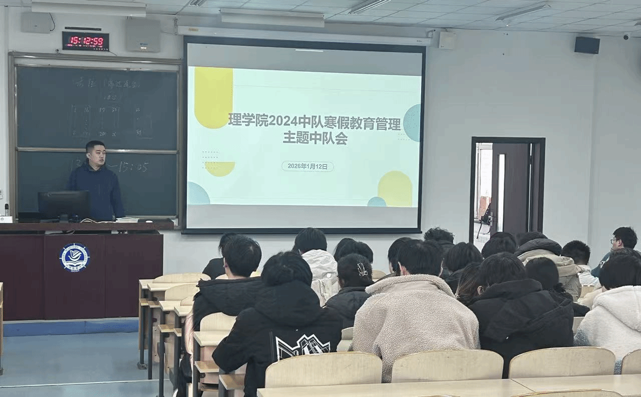 为切实做好寒假期间学生教育管理工作,1月12日,理学院2024中队于励志楼401召开寒假教育管理主题中队会。会议围绕“日常安全、遵规守纪、心理健康、健康生活”四项内容展开,会议由2024中队专兼职指导员主持,全体学生参加。