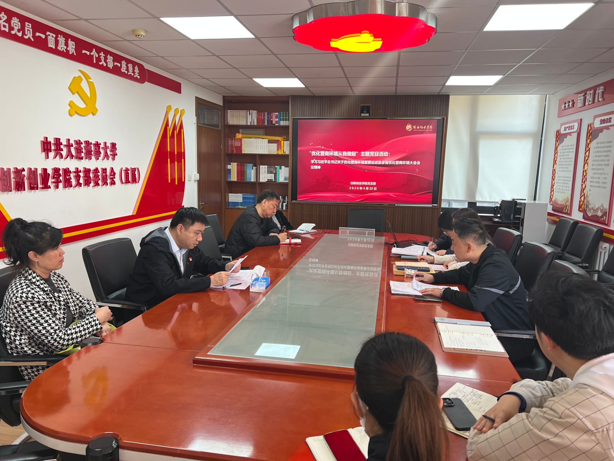 为深入贯彻落实学校树立和践行正确政绩观学习教育工作推进会精神,持续深化党的创新理论武装,引导全体党员坚定理想信念、强化责任担当,4月22日上午,创新创业学院党支部在大学生活动中心304会议室开展树立和践行正确政绩观学习教育暨“优化营商环境从我做起”主题党日活动,全体党员参会。