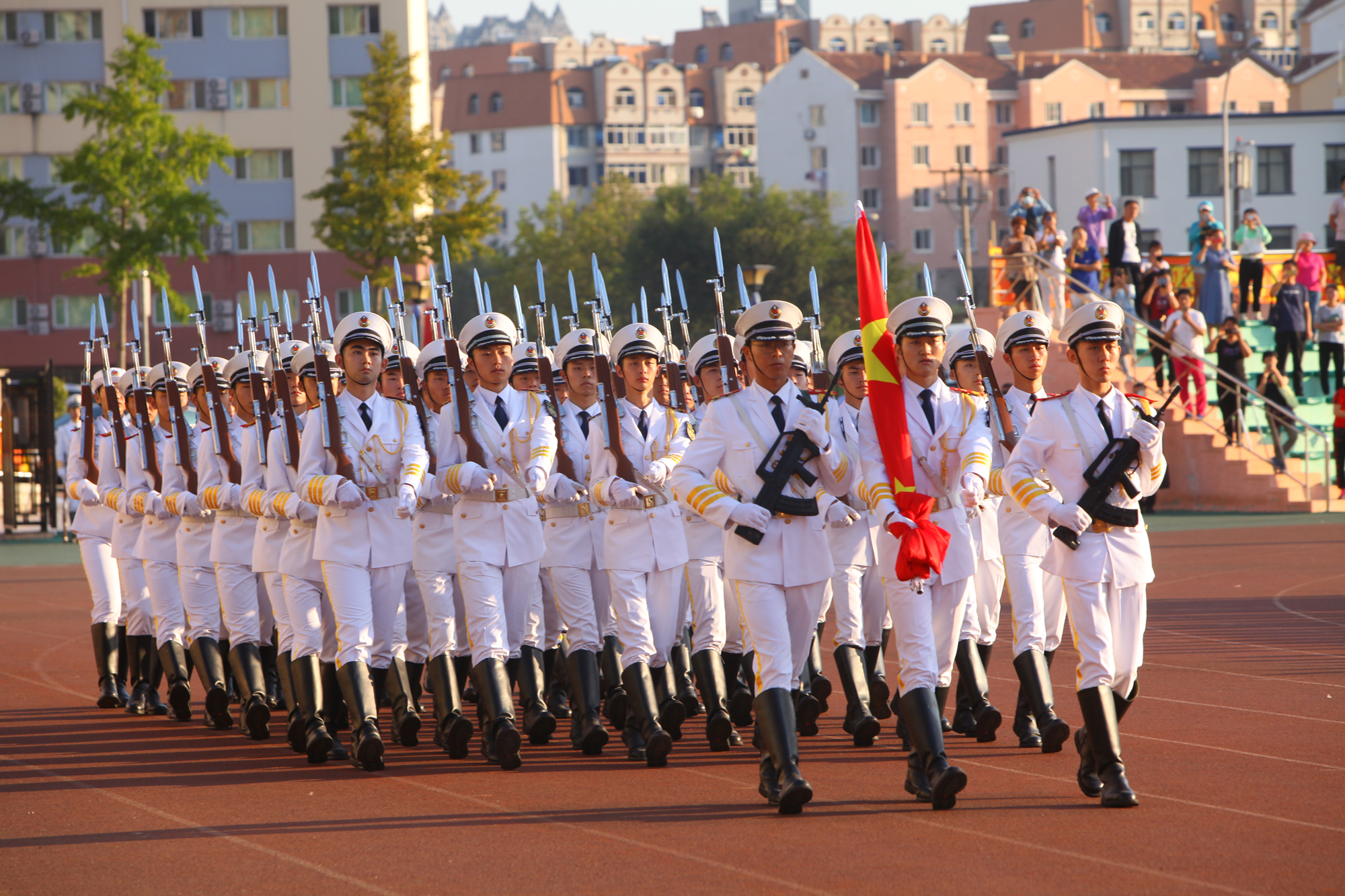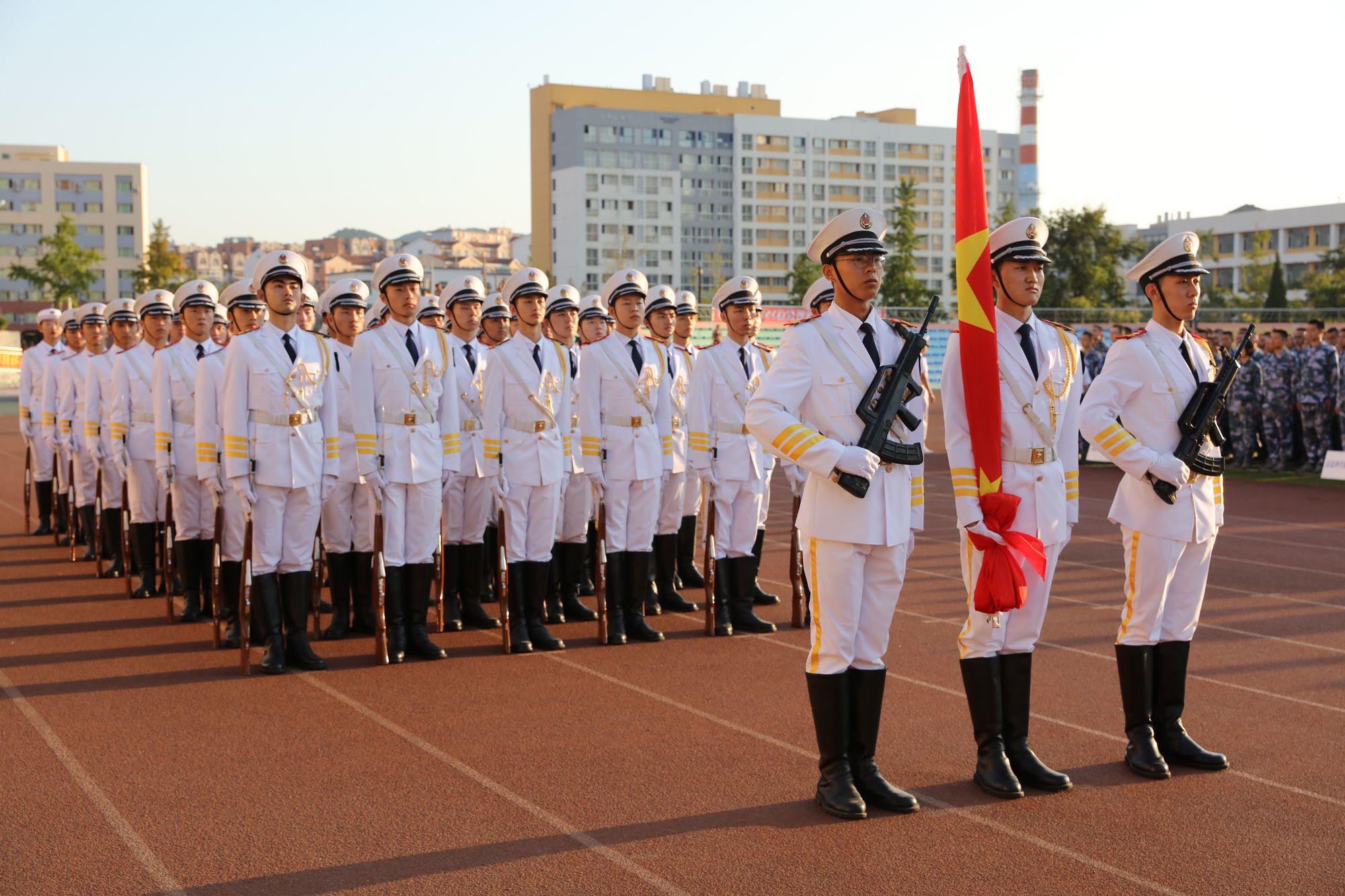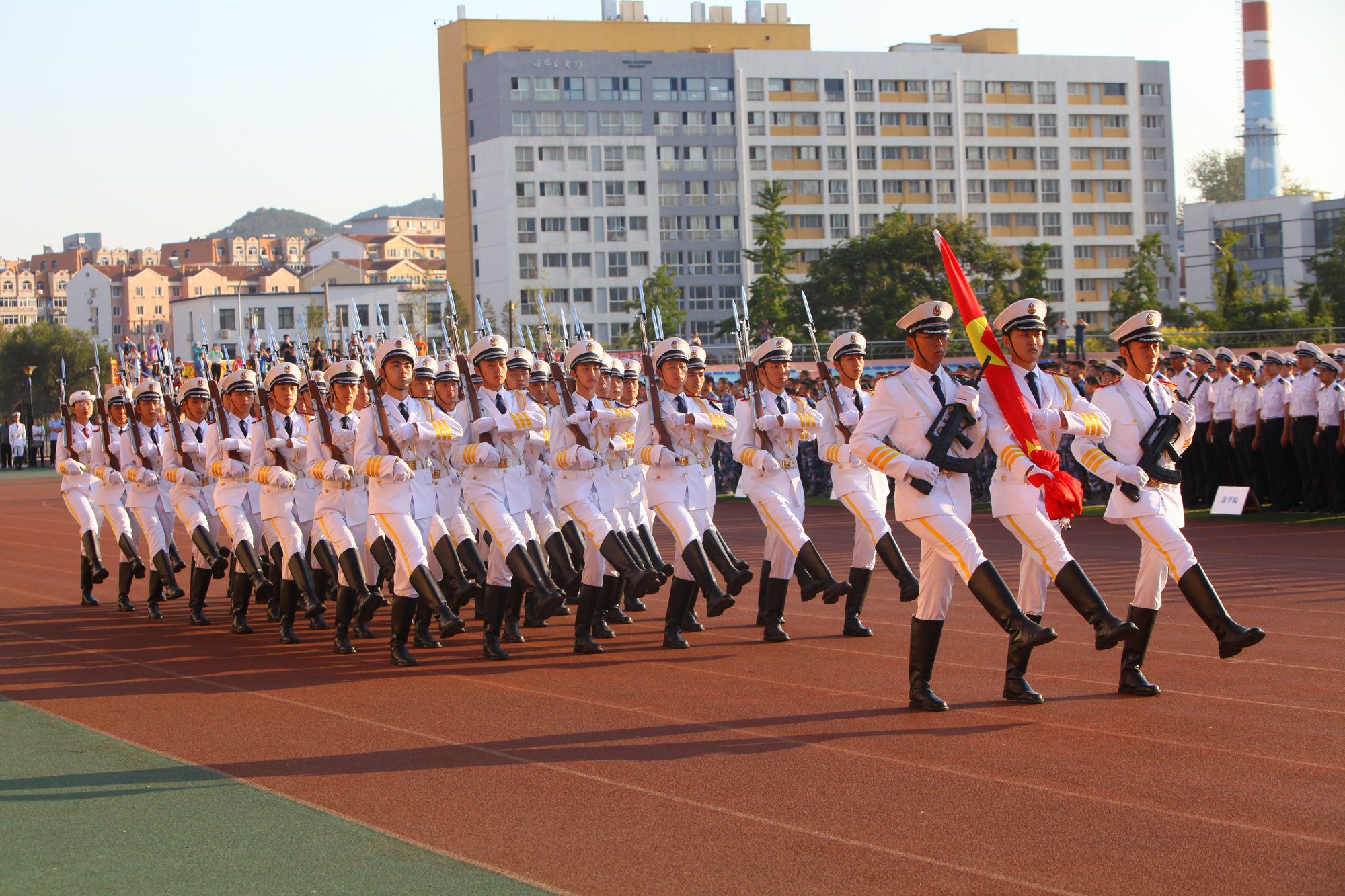 党委副书记许民强,学校相关职能部门和各学院学生工作负责人、各中队学生指导员及全体在校本科学生,带着满腔热情参加了升国旗仪式。