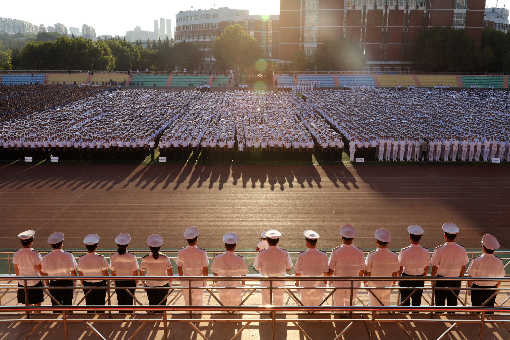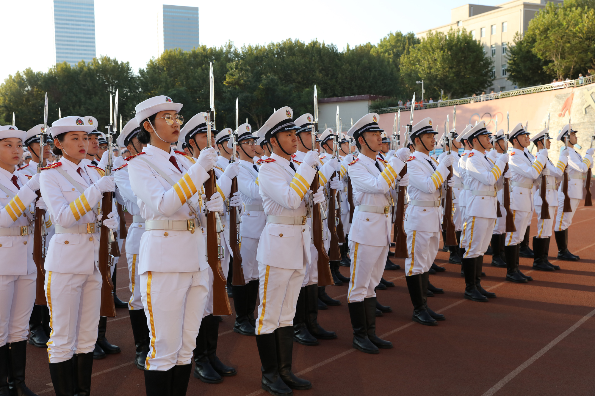 伴随清晨的阳光,各学院队伍向着西山体育场汇聚。