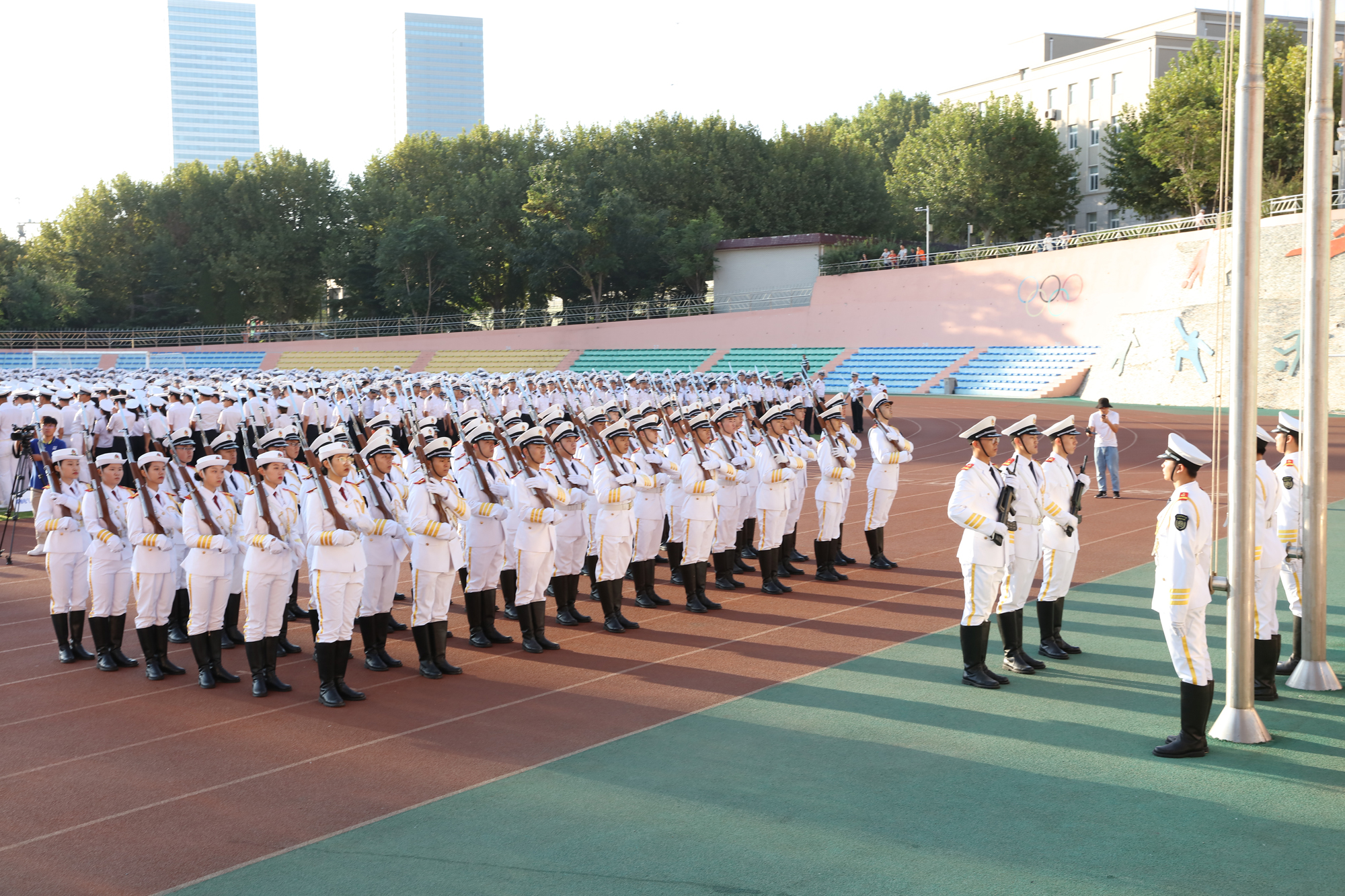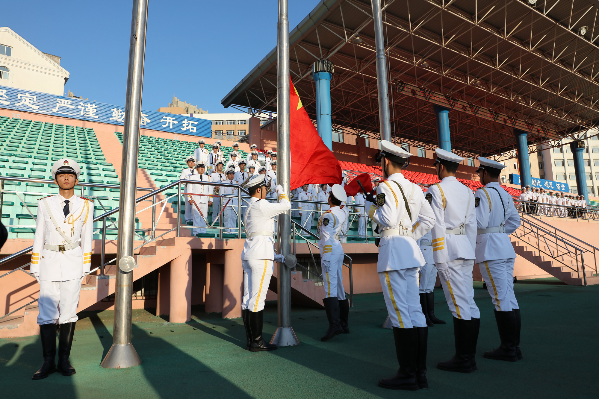 这是新学期第一次升国旗仪式,是海大多年来坚持的开学第一课,也是海大的优良传统。