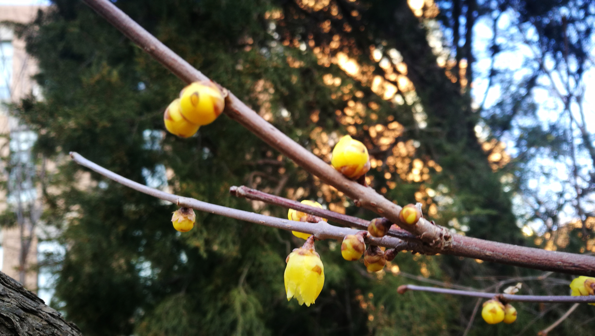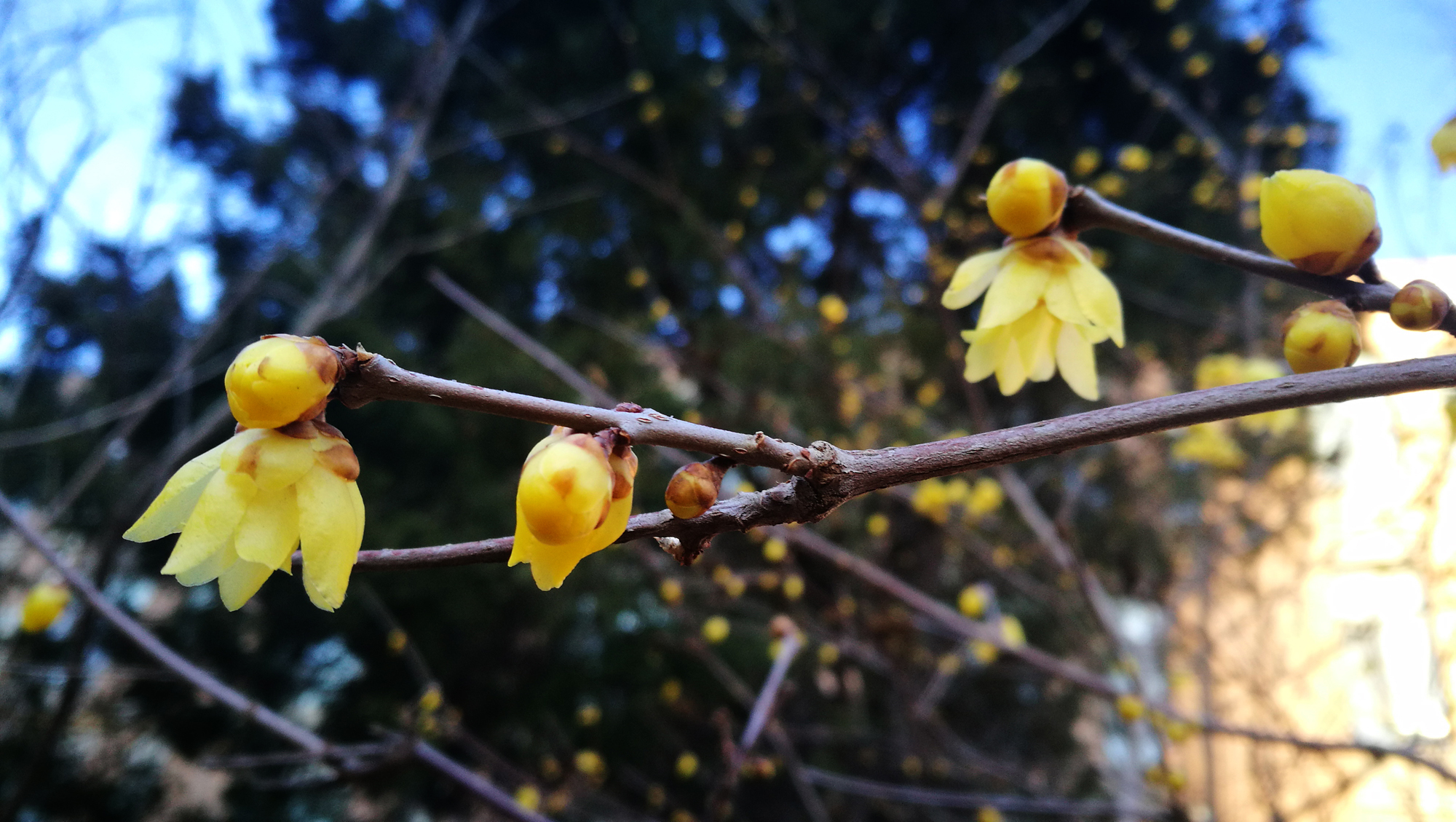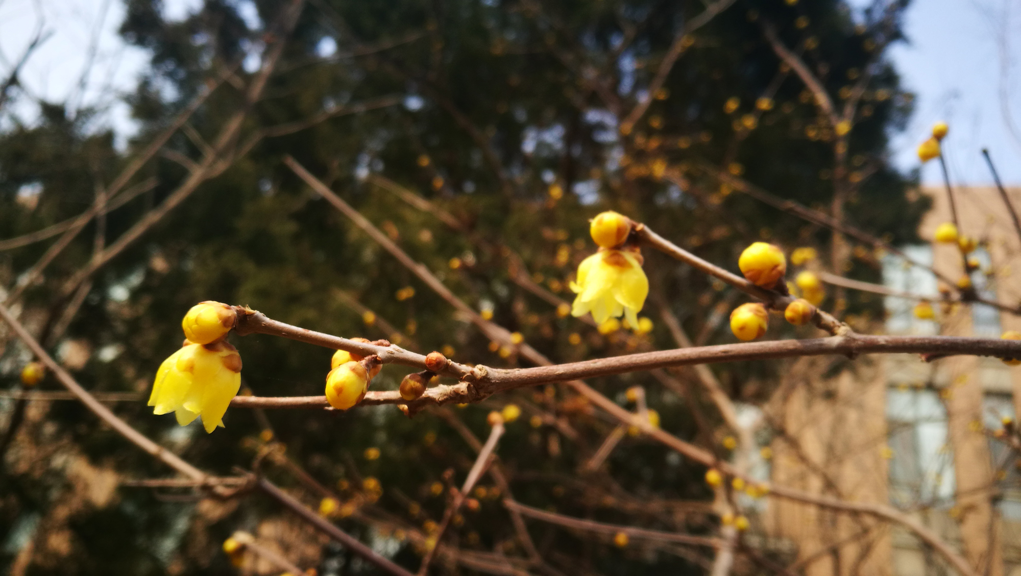 阳春二月,春寒料峭,但我们校园里的腊梅已含苞怒放,发出阵阵幽香,她那一抹独特绚丽的色彩,悄悄地告诉我们春天来了。