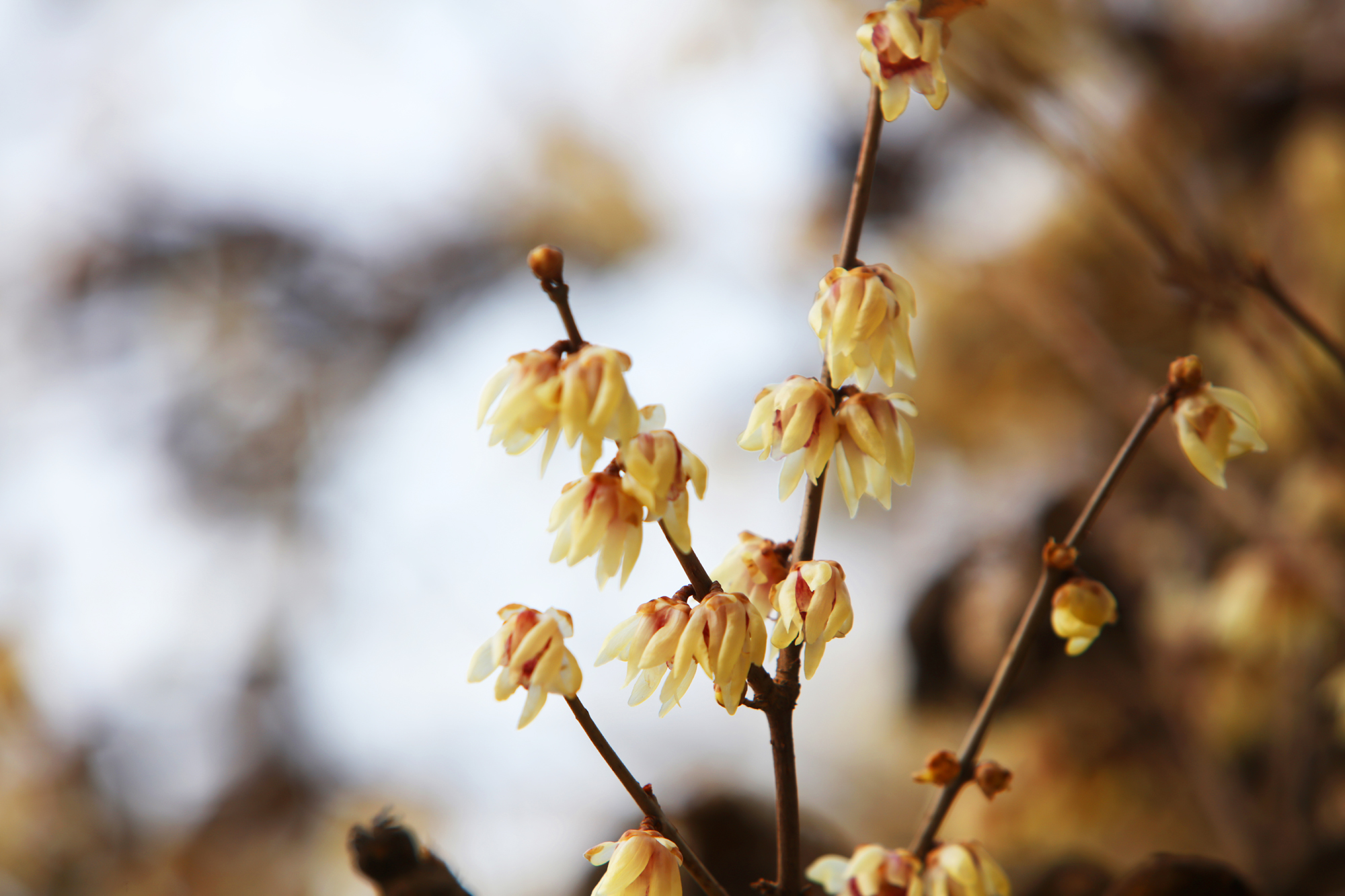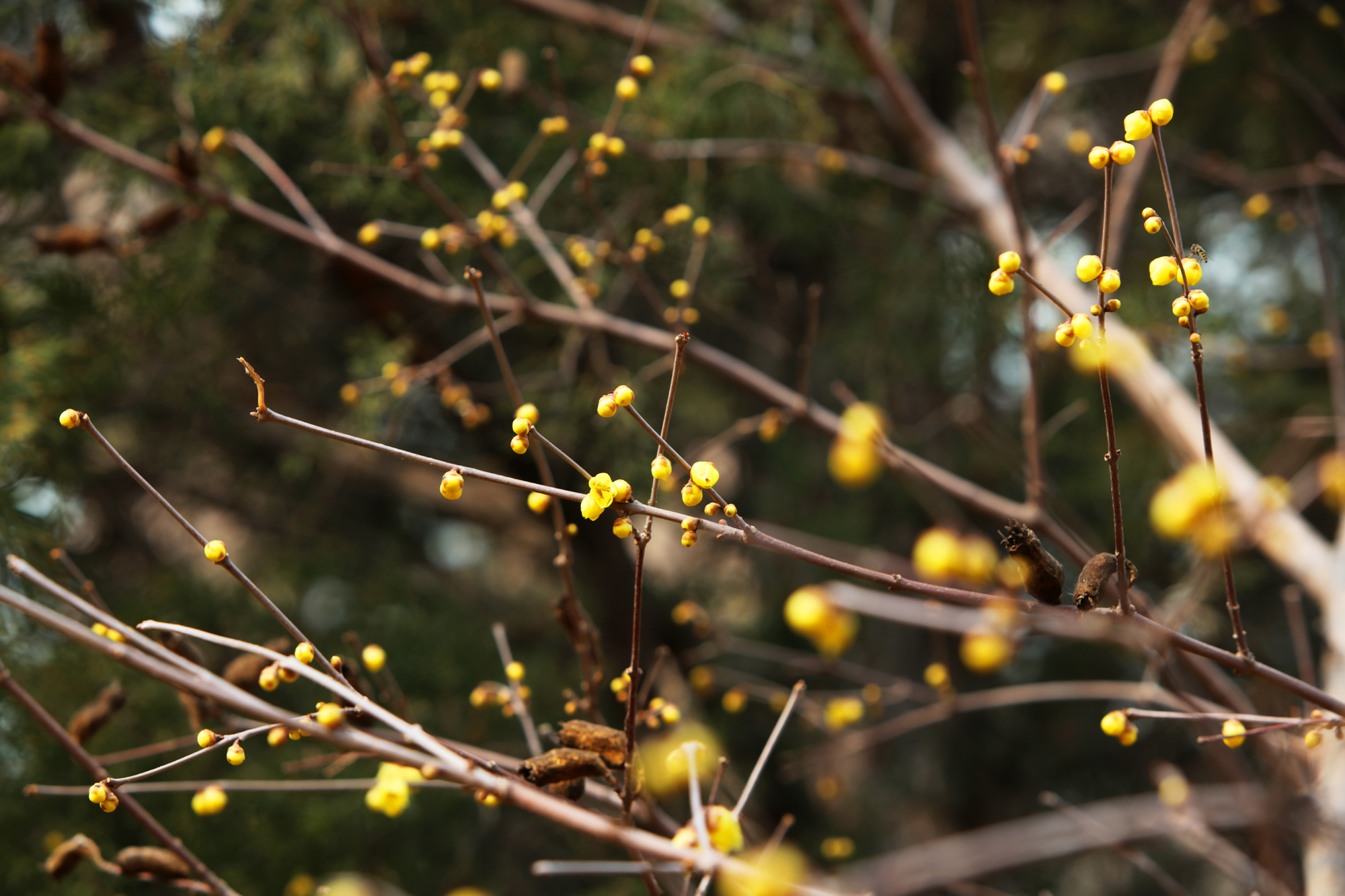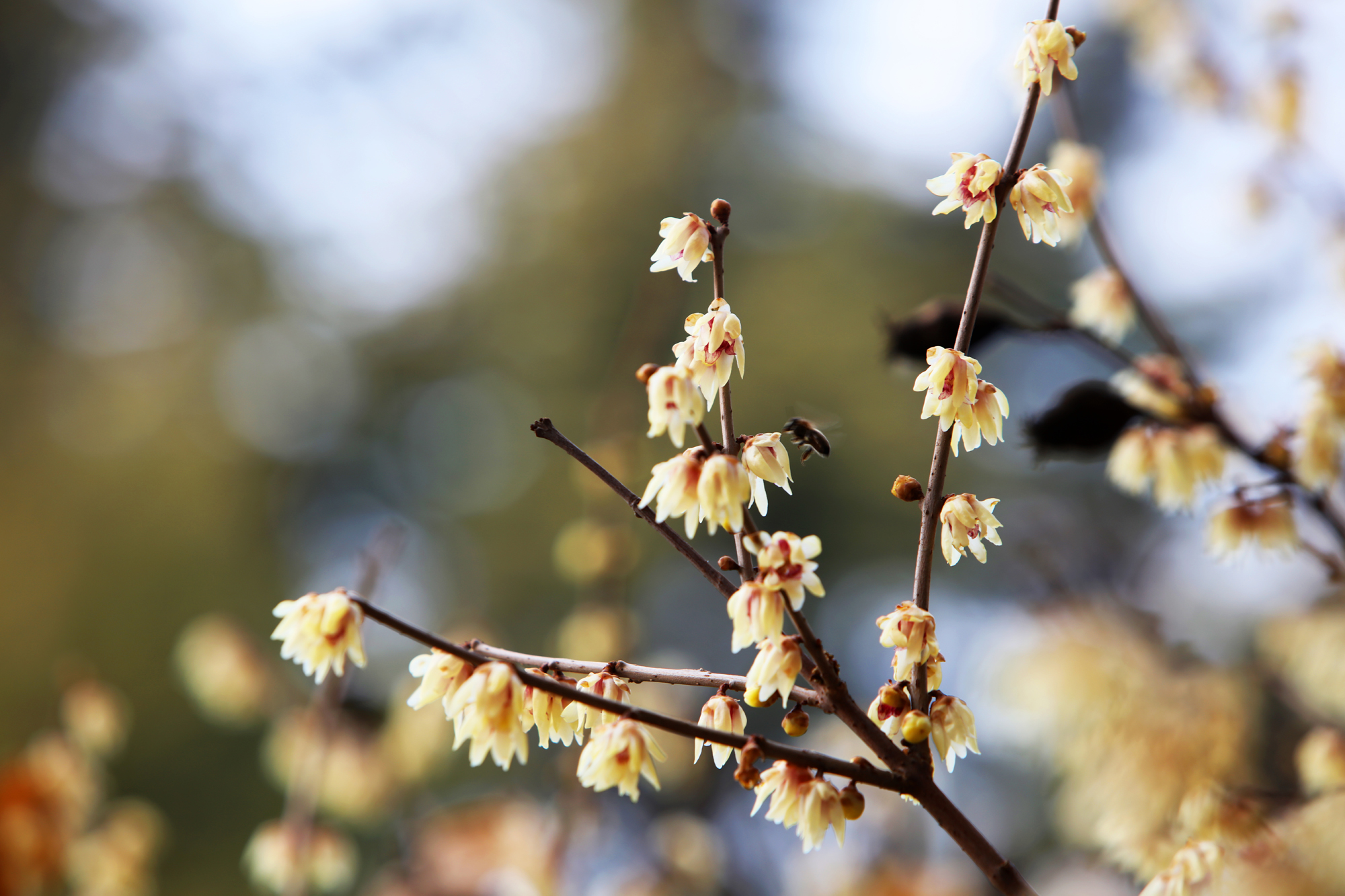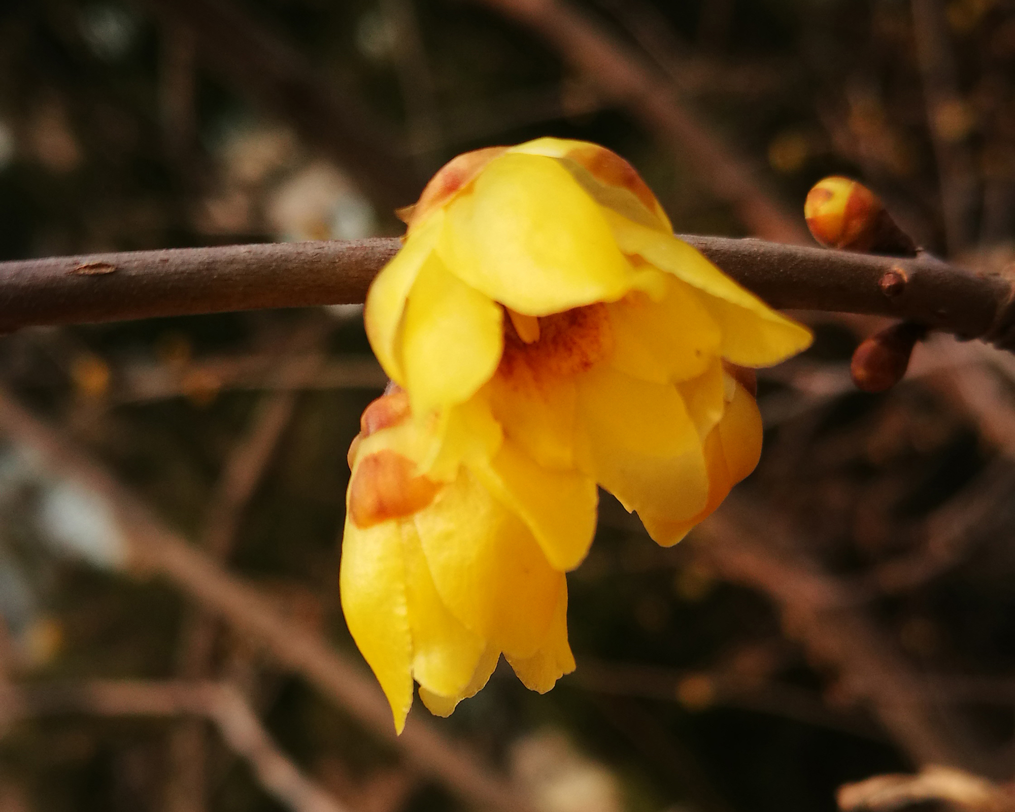 阳春二月,春寒料峭,但我们校园里的腊梅已含苞怒放,发出阵阵幽香,她那一抹独特绚丽的色彩,悄悄地告诉我们春天来了。