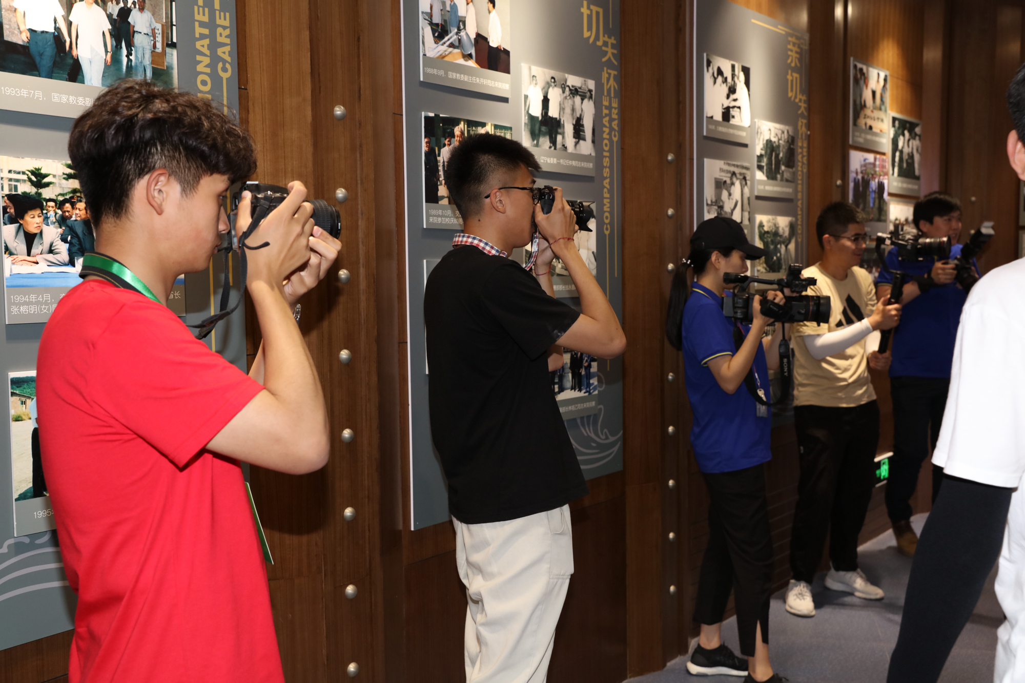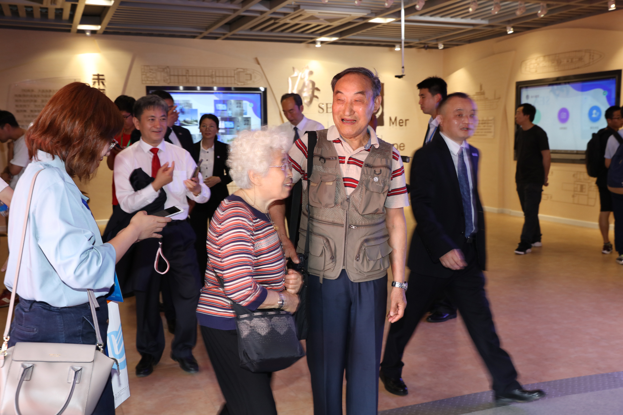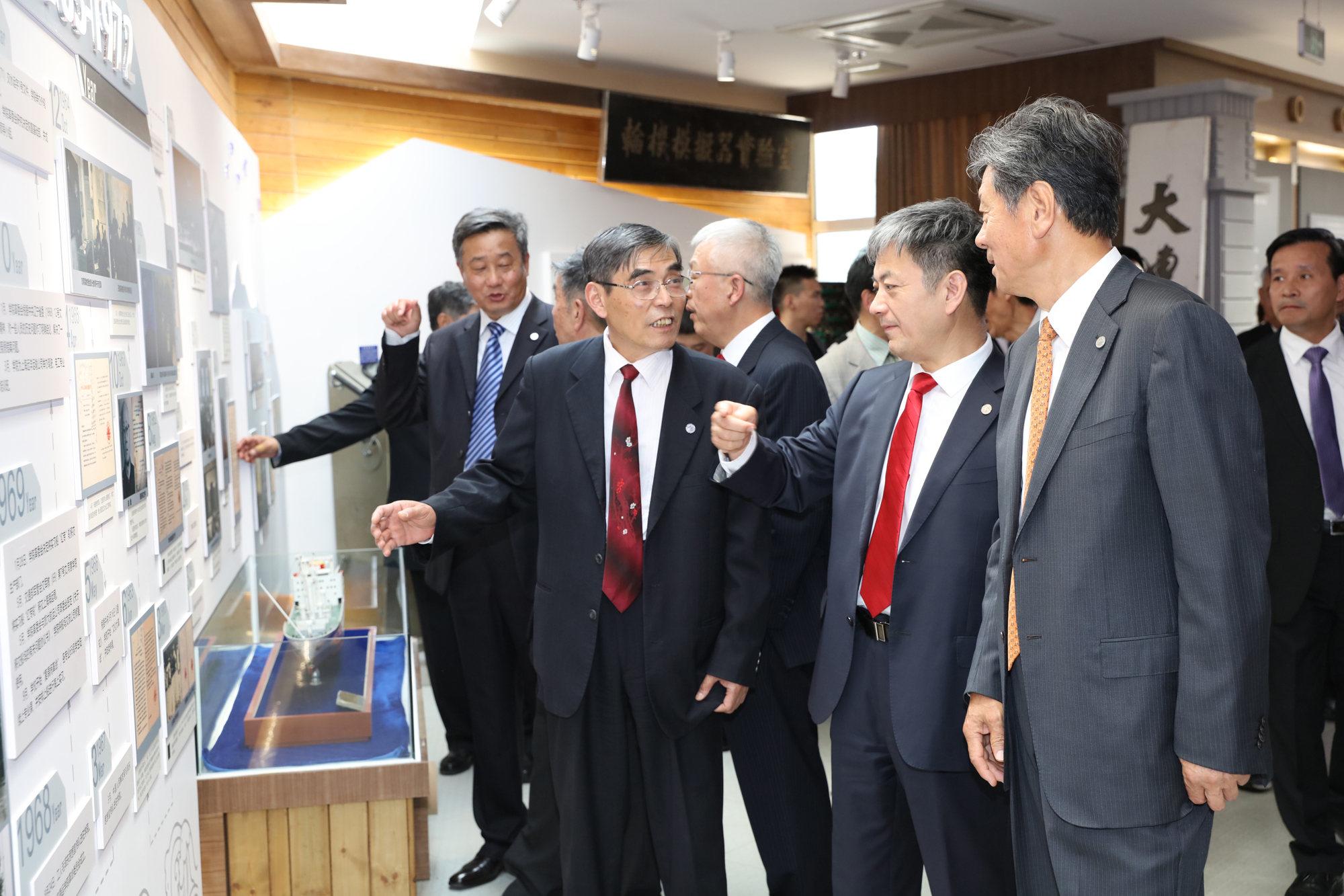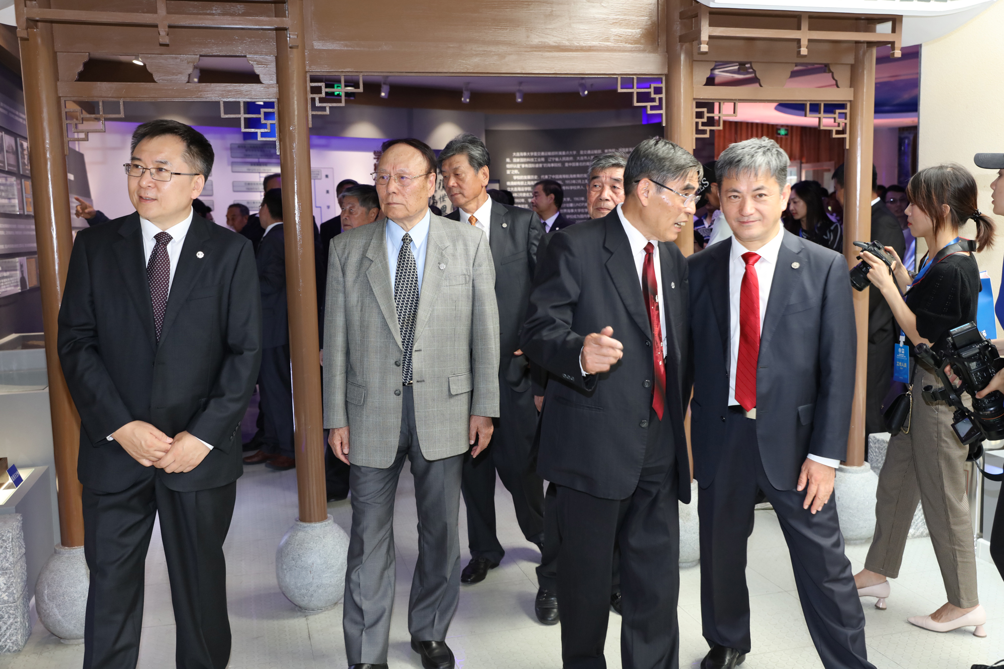 学校老领导司玉琢、郭禹、吴兆麟、王祖温一起为校史展开展揭幕。开展仪式邀请了我校前身上海高等实业学堂首任监督唐文治先生的曾孙唐明德致辞,他带领大家回顾了唐文治先生的治校历史以及唐氏家族为学校发展和我国教育事业所做贡献,并为海大百十诞辰献上诚挚祝福,表达了对海大以及海大人未来发展的美好祝愿。