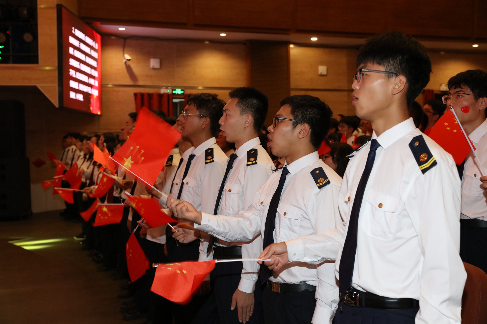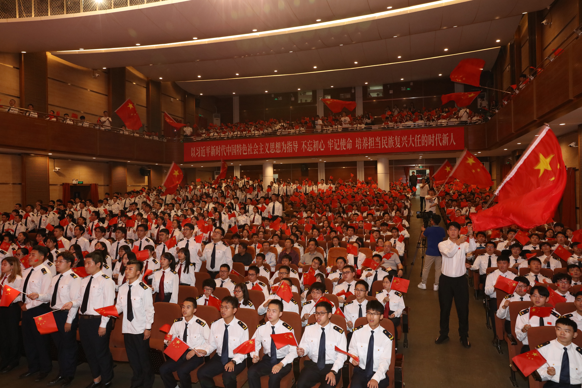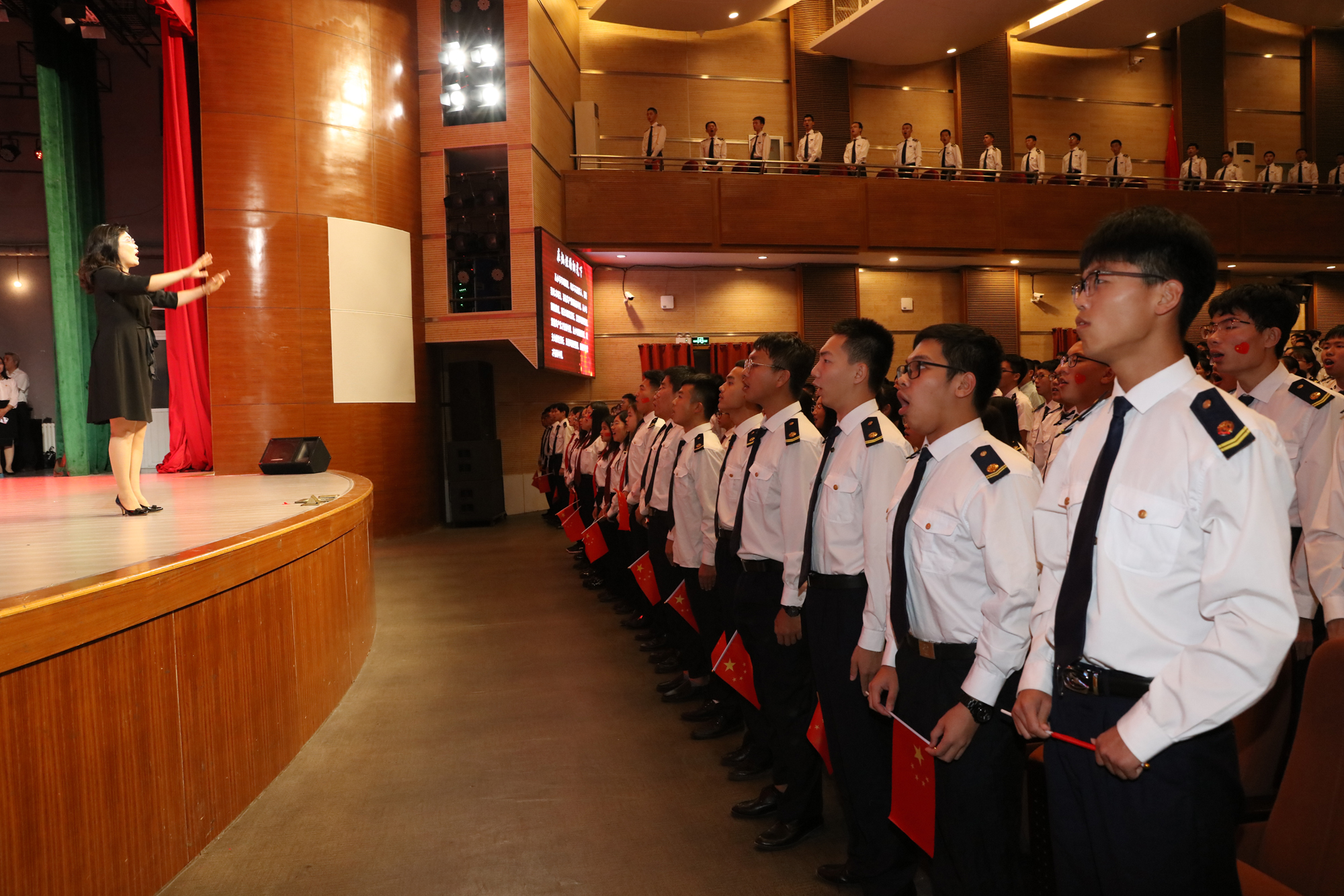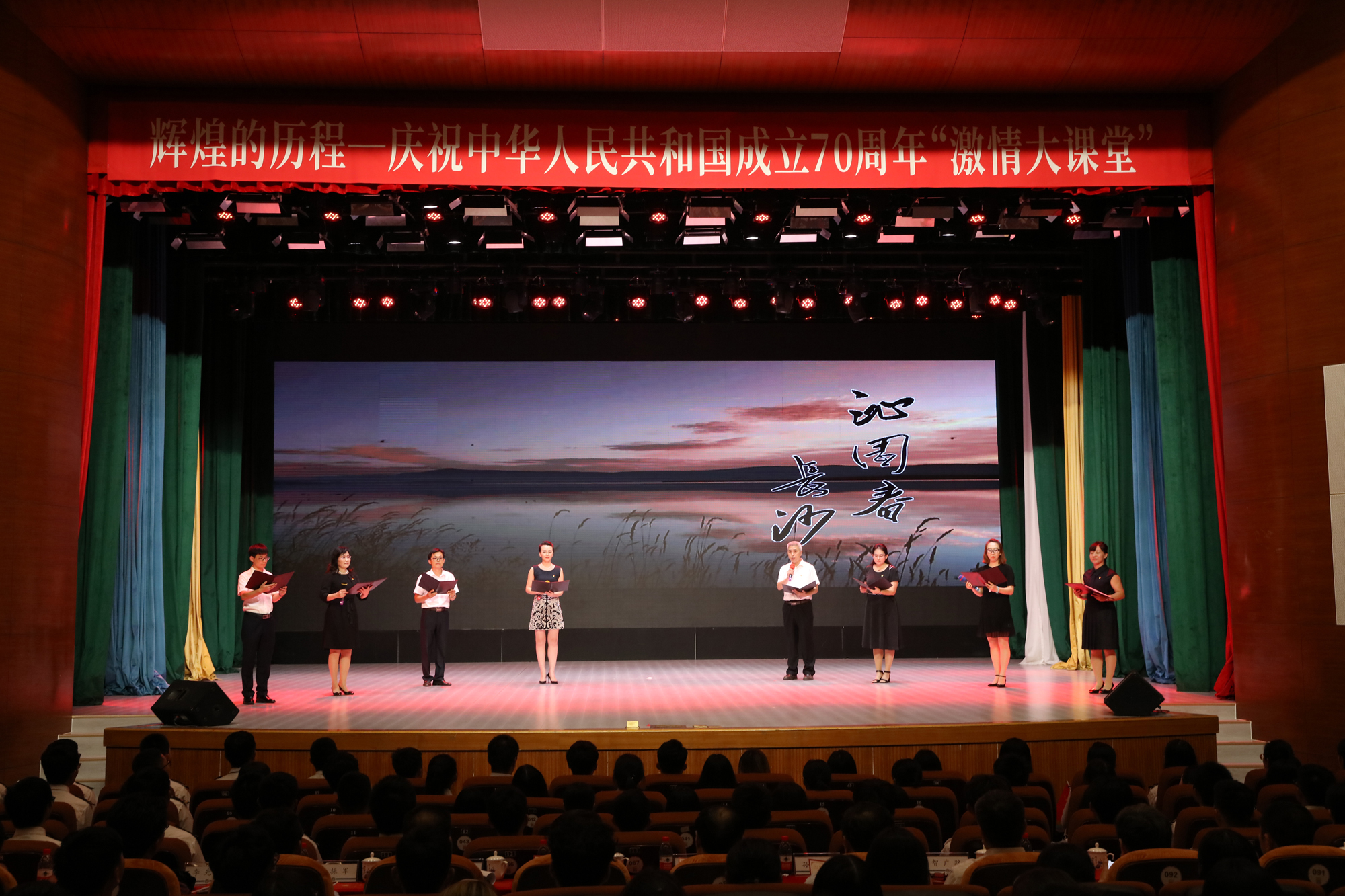 9月26日晚,大连海事大学庆祝中华人民共和国成立70周年而开讲的《毛泽东思想和中国特色社会主义理论体系概论》“激情大课堂”在我校东山礼堂举行。教育部思想政治工作司、交通运输部第二批主题教育指导组的有关领导以及我校校领导和学校相关职能部门负责人、马克思主义学院全体教师和船舶电子电气工程、信息管理与信息系统、英语、船舶与海洋工程、物流管理、数学与应用数学等专业的近千名学生共同参与了这堂别样的思政课。