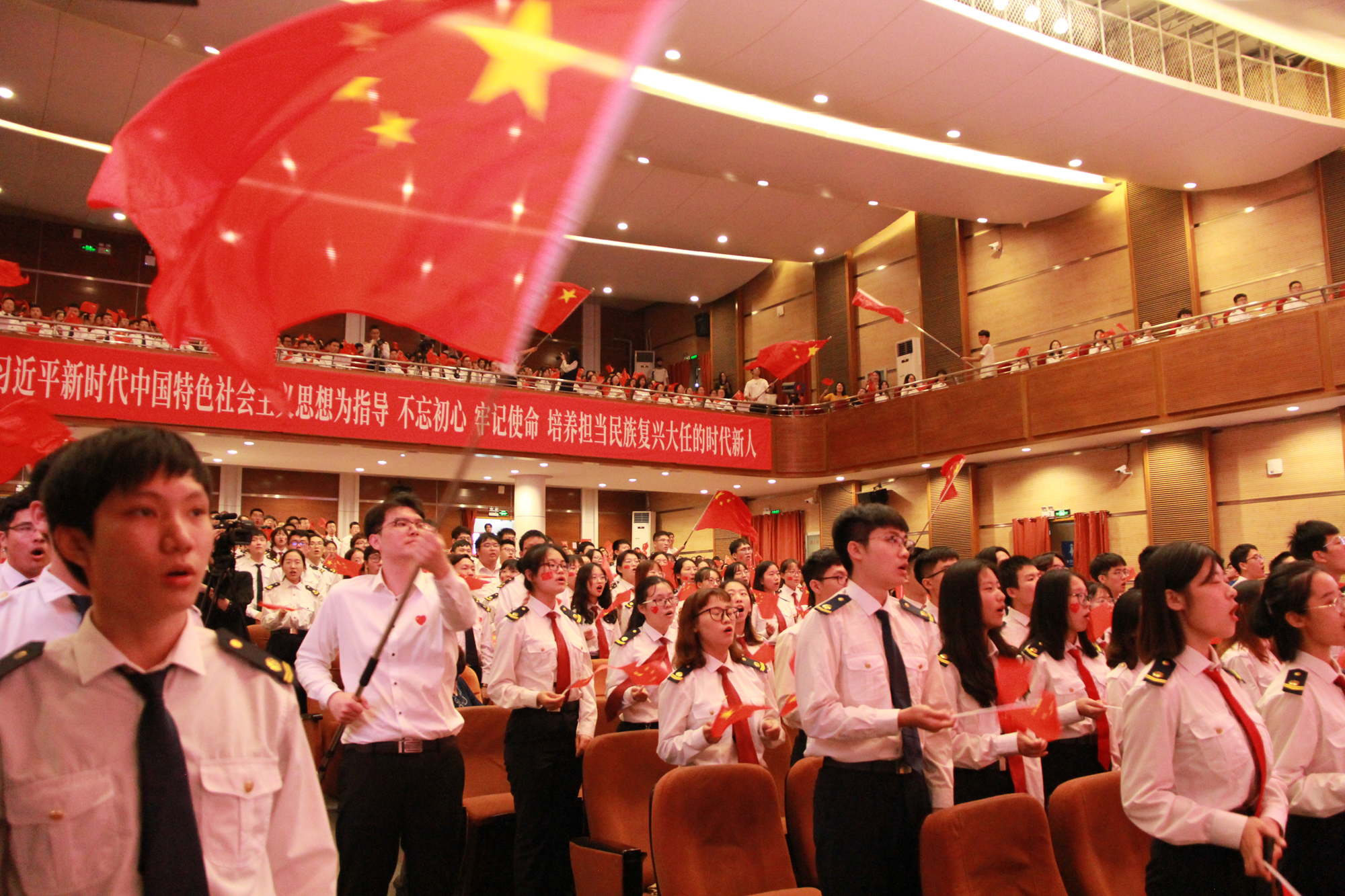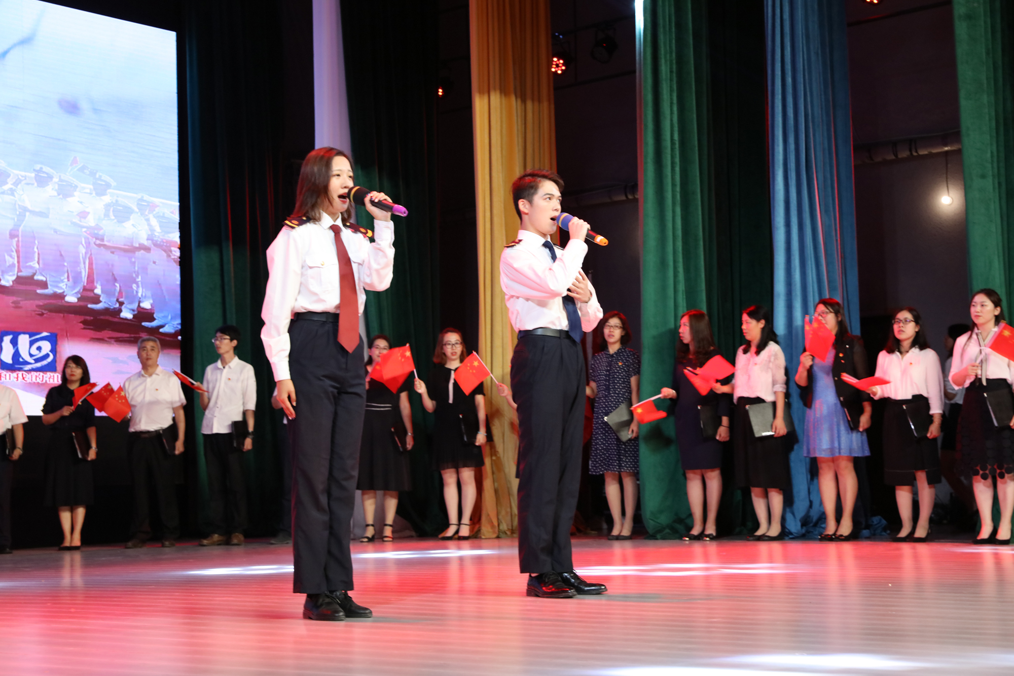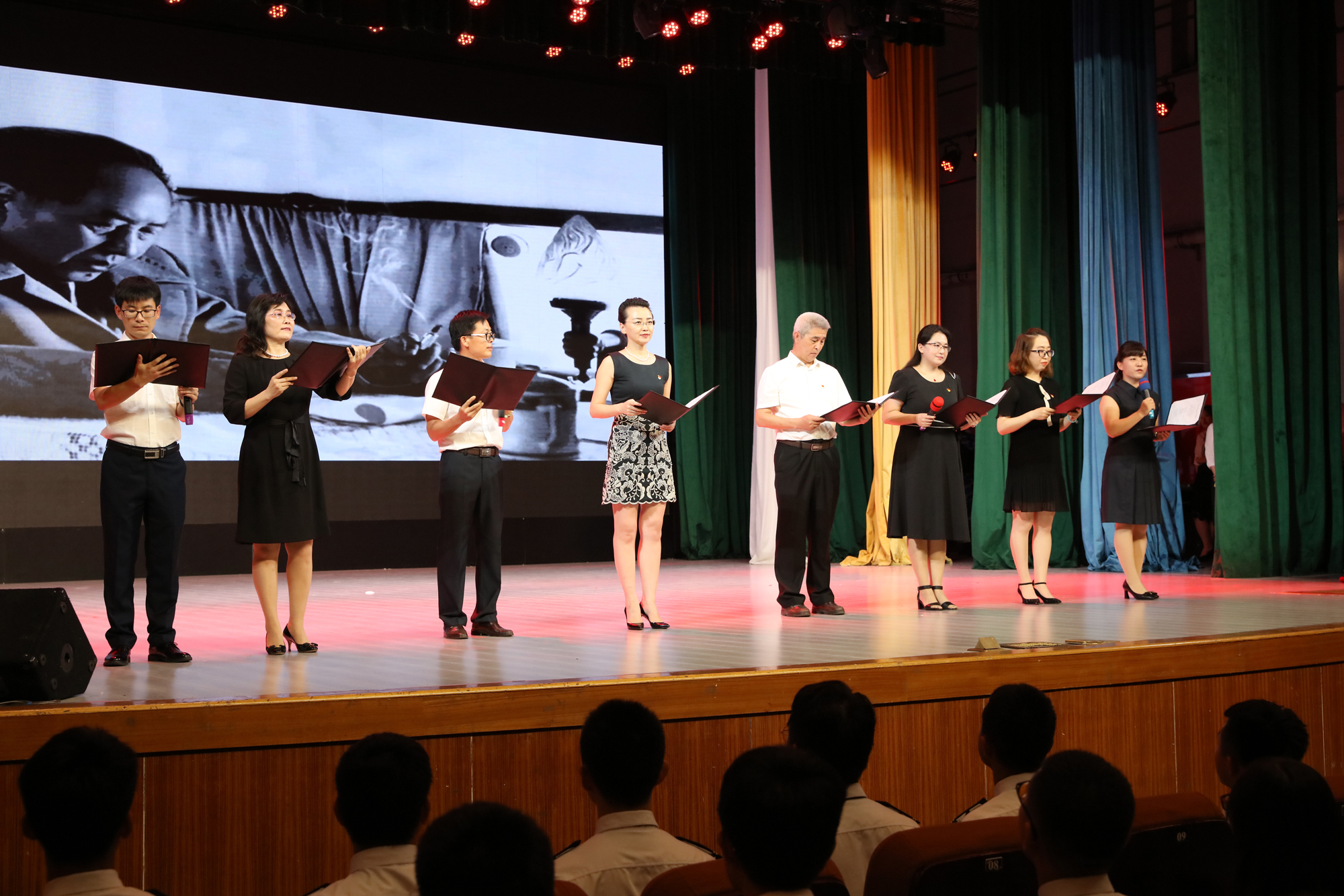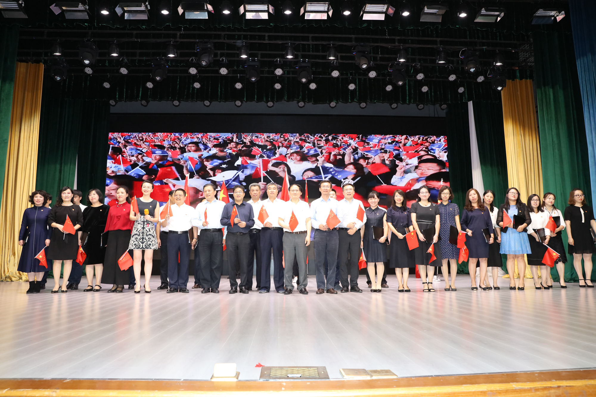 9月26日晚,大连海事大学庆祝中华人民共和国成立70周年而开讲的《毛泽东思想和中国特色社会主义理论体系概论》“激情大课堂”在我校东山礼堂举行。教育部思想政治工作司、交通运输部第二批主题教育指导组的有关领导以及我校校领导和学校相关职能部门负责人、马克思主义学院全体教师和船舶电子电气工程、信息管理与信息系统、英语、船舶与海洋工程、物流管理、数学与应用数学等专业的近千名学生共同参与了这堂别样的思政课。