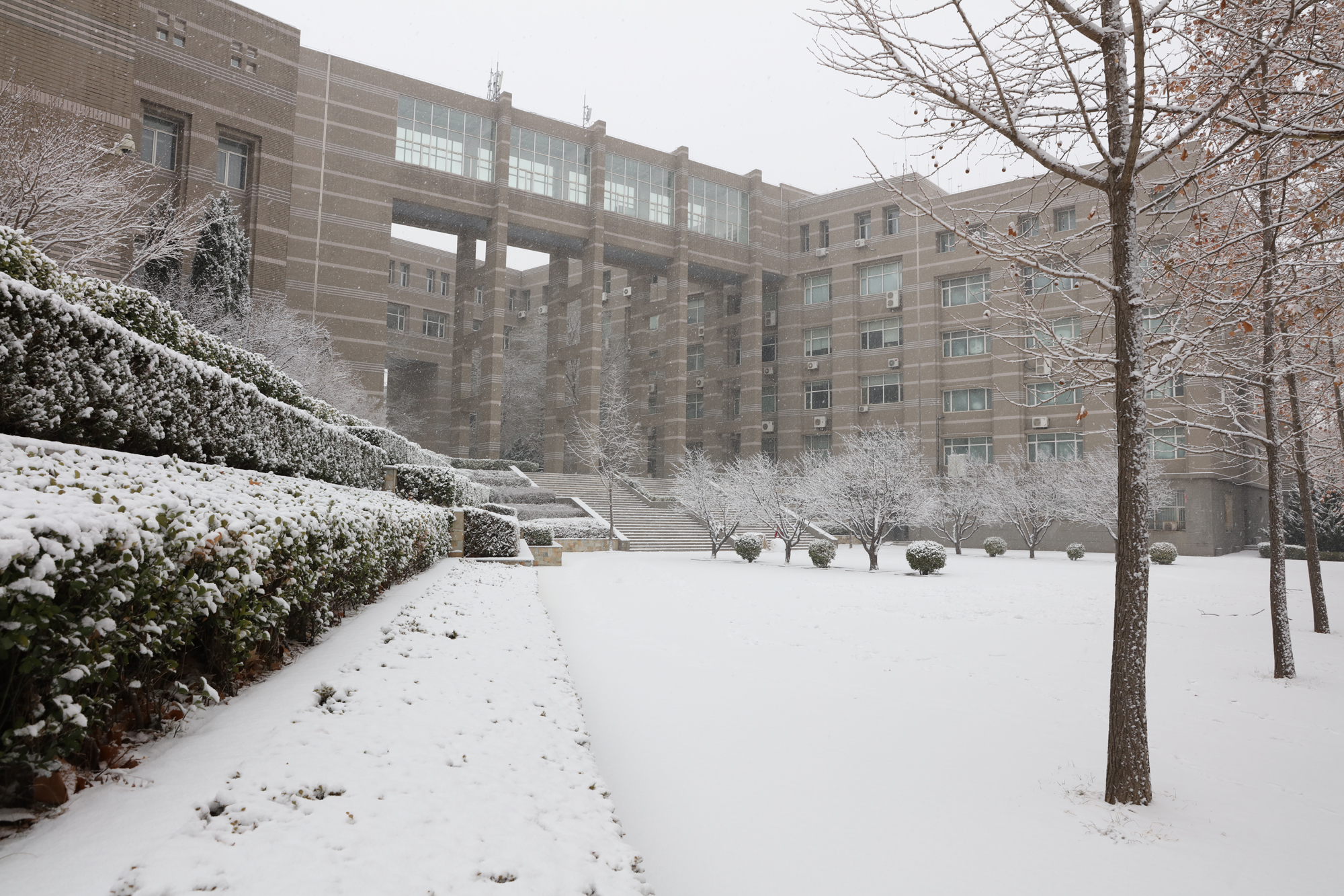 2019年12月20日上午,突如其来的一场大雪顷刻间使整个校园银装素裹,呈现出好一派北国风光,这也是今年入冬以来大连下的第一场大雪,瑞雪兆丰年呀,好!