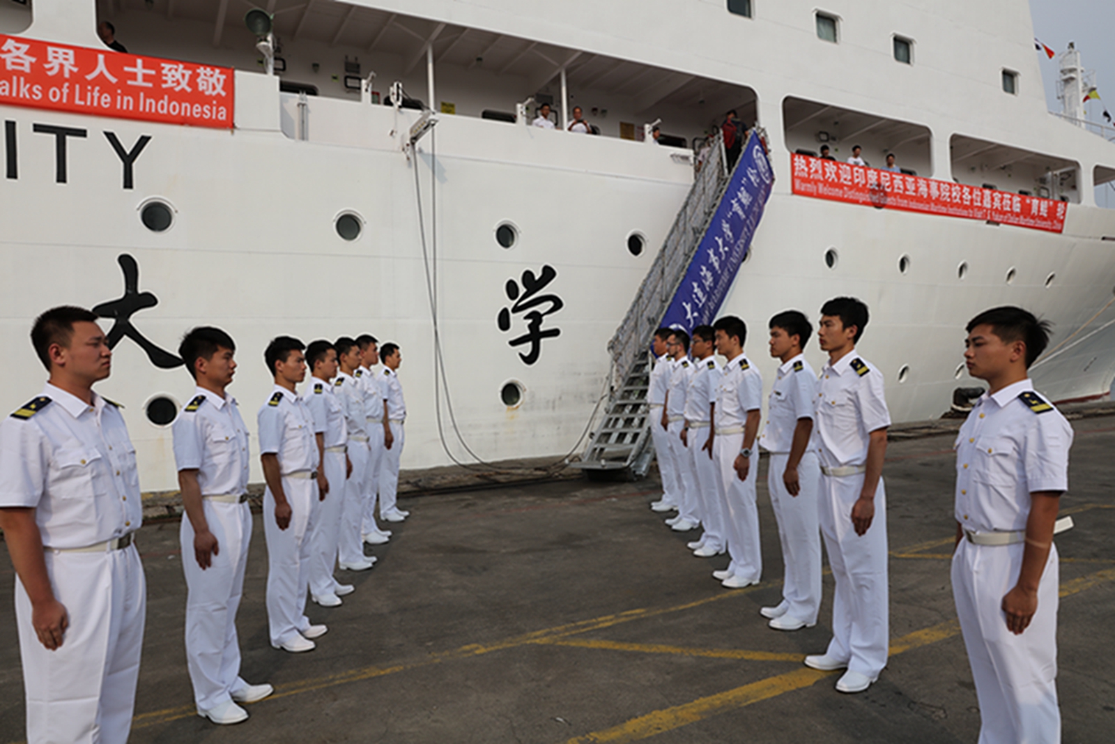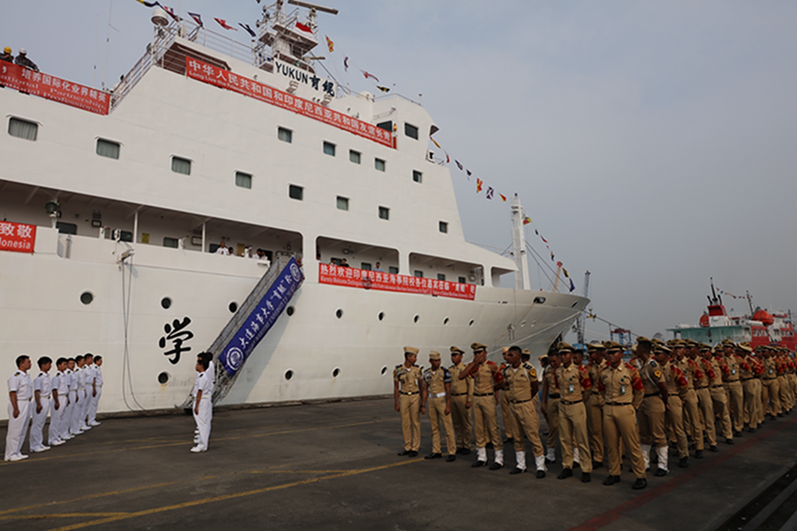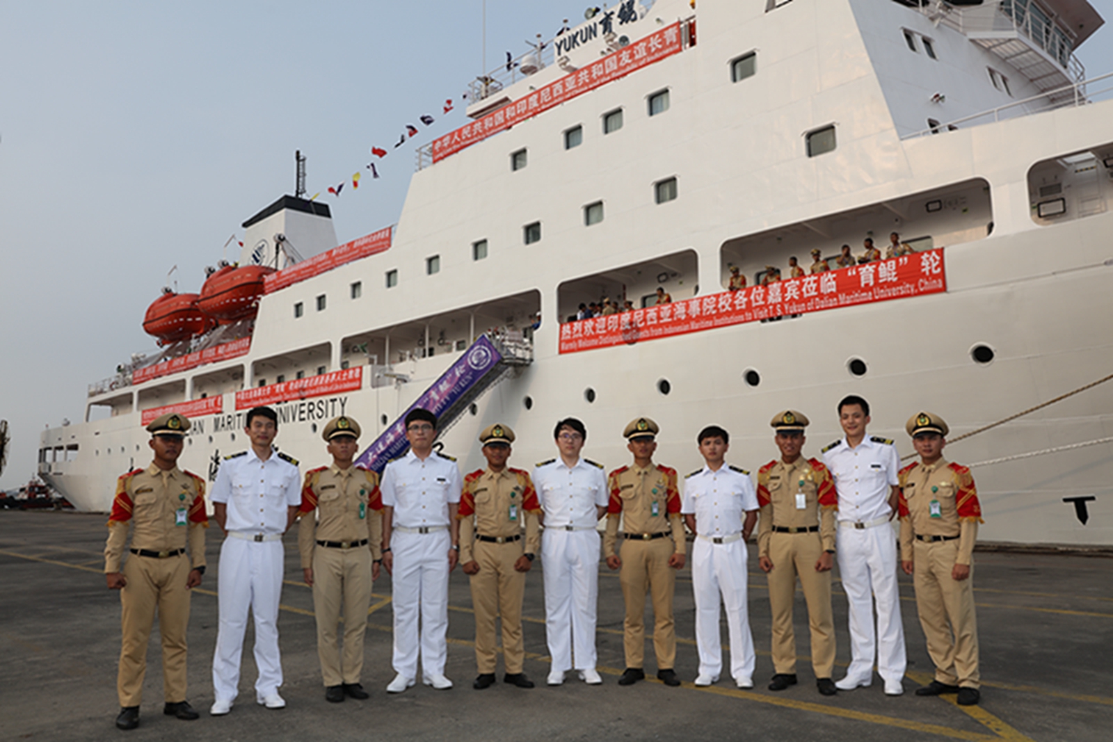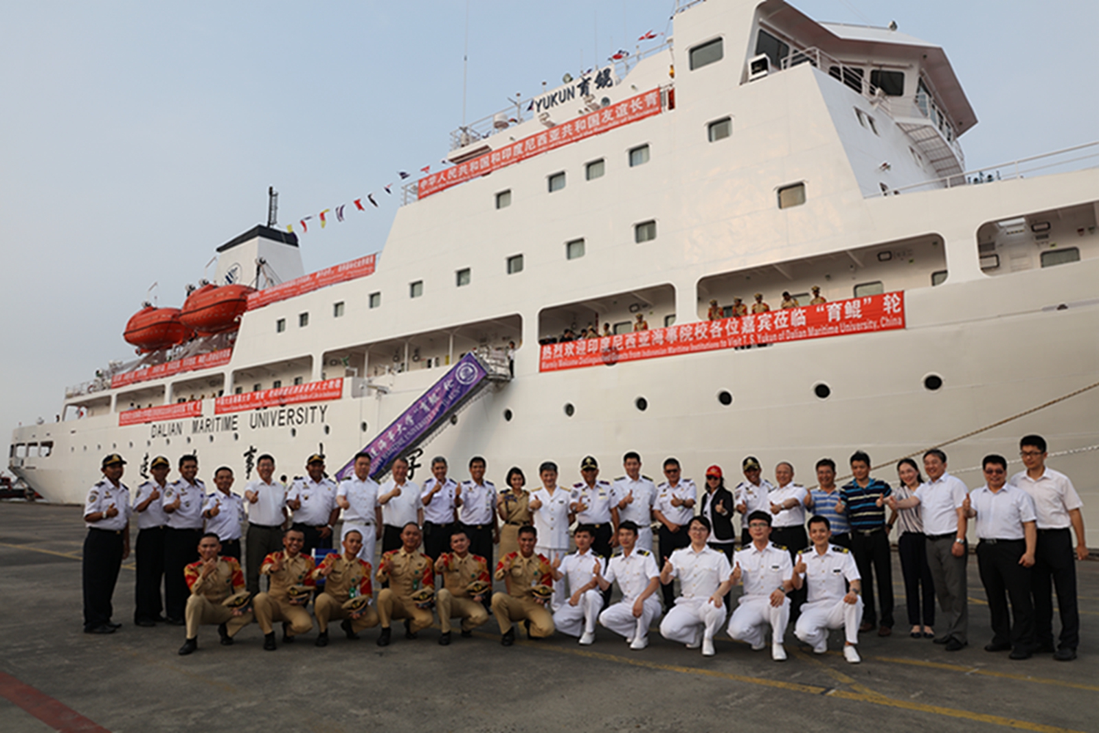 2018年5月28日下午,我校教学实习船“育鲲”轮顺利抵达印度尼西亚共和国雅加达港,印尼高等航海学院校长、大连海事大学校友代表以及印尼雅加达港务局领导到港迎接。