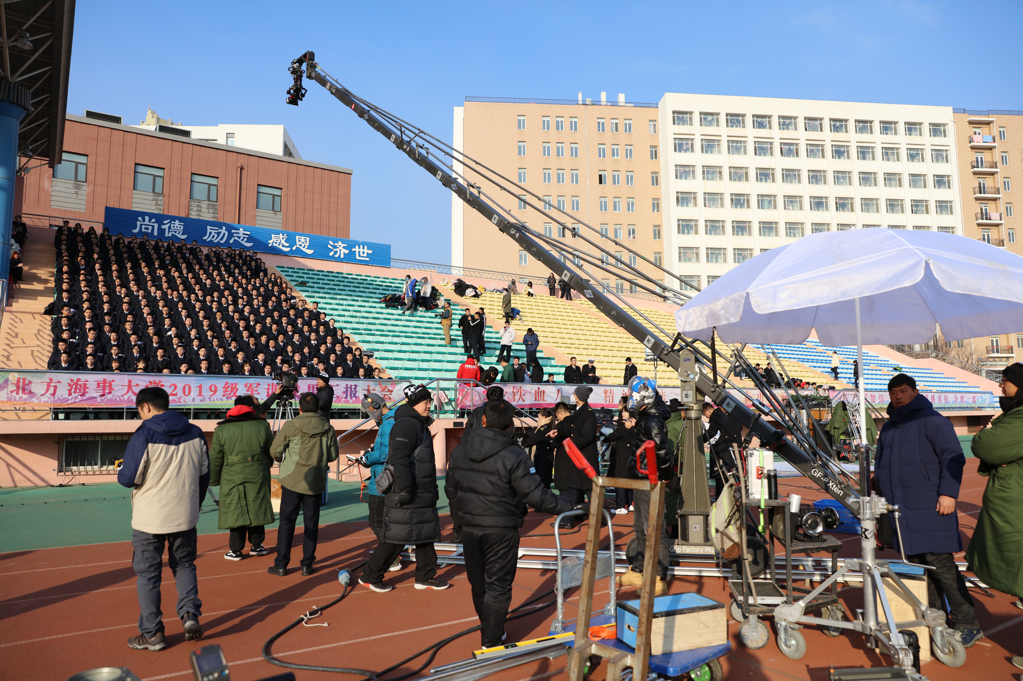11月29日上午,电影《高校辅导员》开机仪式在我校举行。省委宣传部副部长孙成杰,省委教育工委专职委员张迎,市委宣传部副部长王旭,市委教育工委专职副书记韩英,北方联合影视集团有限公司总经理韩涛,我校党委书记郑少南,党委副书记许民强,马克思主义学院教授曲建武以及剧组主创人员和部分师生代表出席了开机仪式。这是国内首部以高校辅导员为题材的主旋律影片。