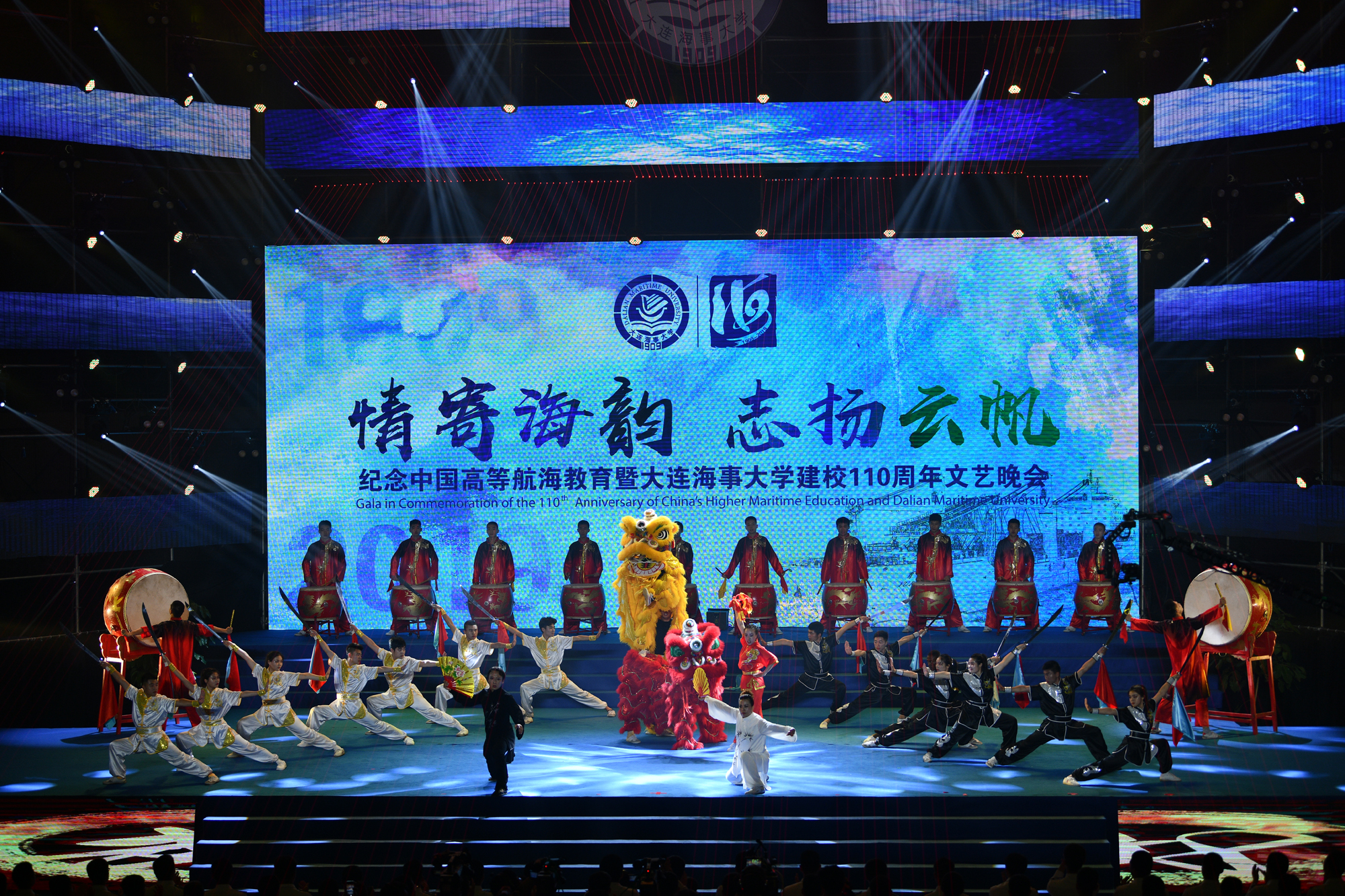 2019年6月8日晚,学校在体育馆举办“情寄海韵 志扬云帆”纪念中国高等航海教育暨大连海事大学建校110周年文艺晚会。晚会分为启航、领航、远航三个篇章,展现了海大110年的发展历程、奋斗历程,展现了学校奋进新时代,助力交通强国、海洋强国建设的历史责任和时代使命,展现了新时代海大青年良好的精神风貌。