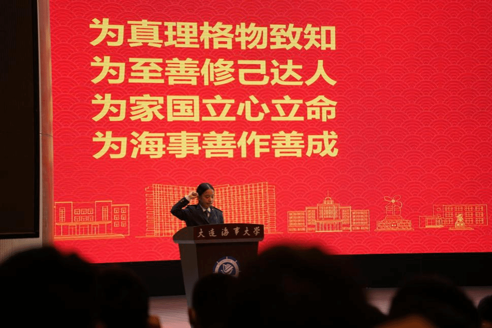 2024年学校“十佳大学生”荣誉获得者2021级本科生时琪带领全体与会学生进行海大人学习观宣誓。