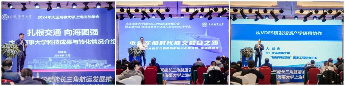 推介会上,学校科技处处长弓永军,大连东北亚国际航运中心研究院院长匡海波,船舶导航系统国家工程研究中心主任胡青,以及9位校友分别围绕学校科技成果转化、电动车船时代能交融合、VDES 研发、航运大数据实践应用、AI 在航运中的应用与发展、以及人力资源等方面进行了经验推介和专题分享。