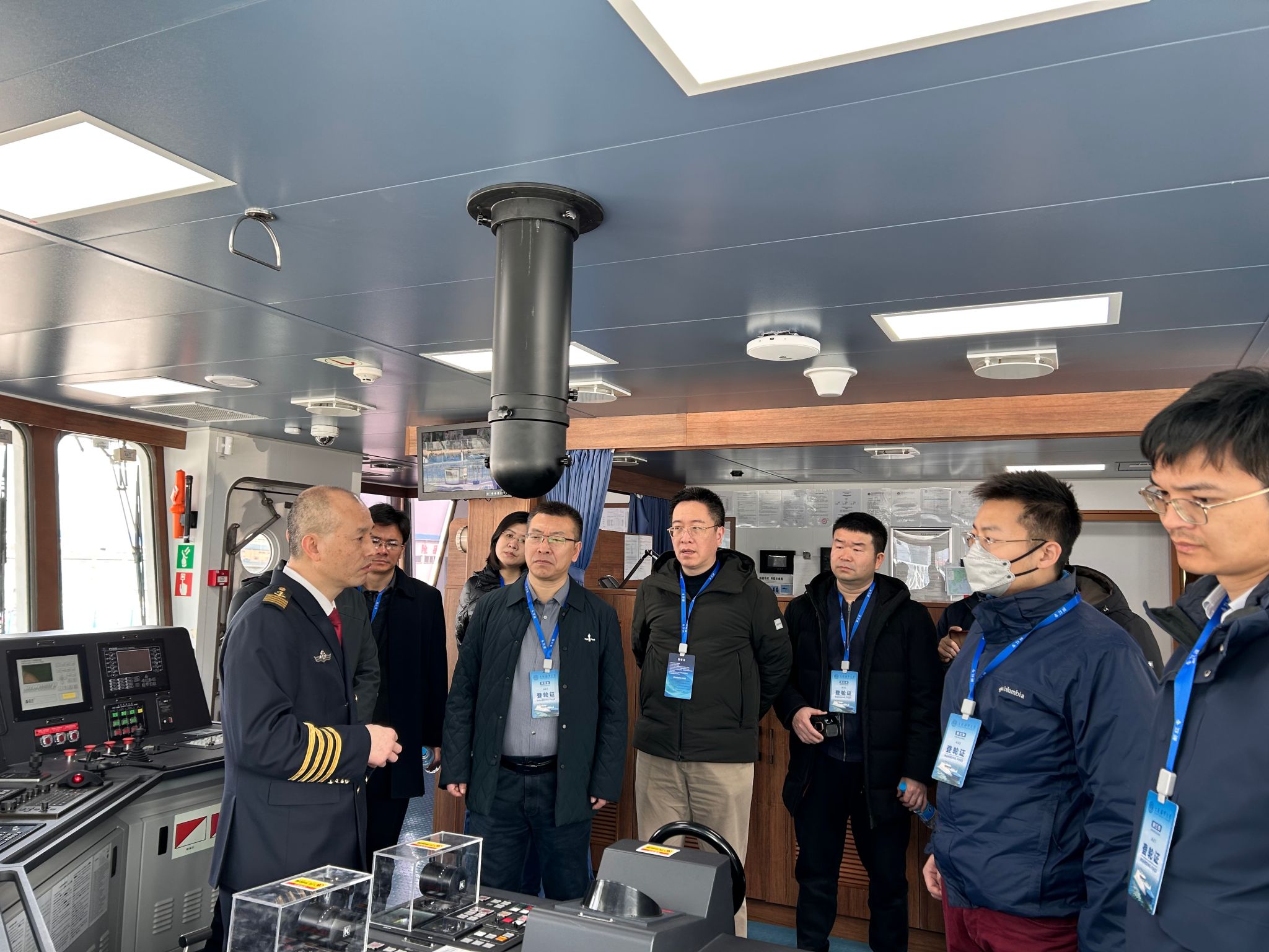 3月15日,参会人员前往“新红专”轮参观并开展现场交流,“新红专”轮船长何庆华教授等陪同参观并讲解了驾驶室的综合导航系统、智能实训系统及机舱情况等。