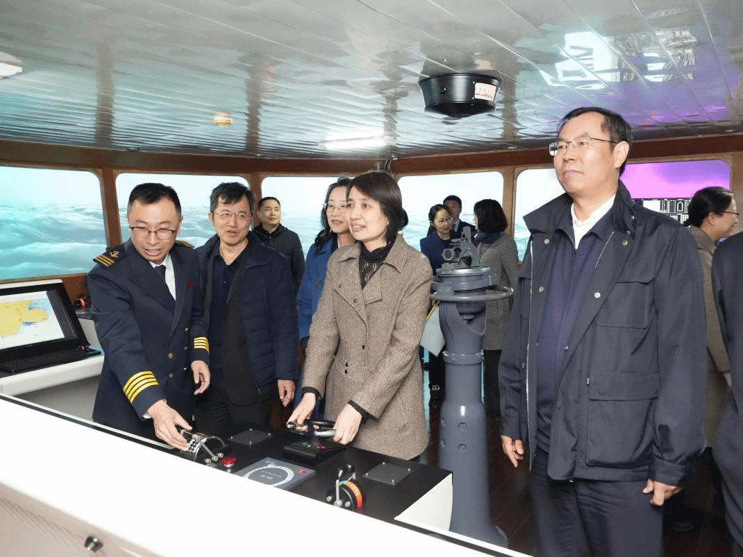 座谈结束后,罗钟山陪同朱旭一行先后前往民建经济研究中心、航海模拟器实验室、海底工程技术与装备国际联合研究中心和辽宁省水下机器人工程研究中心进行考察。