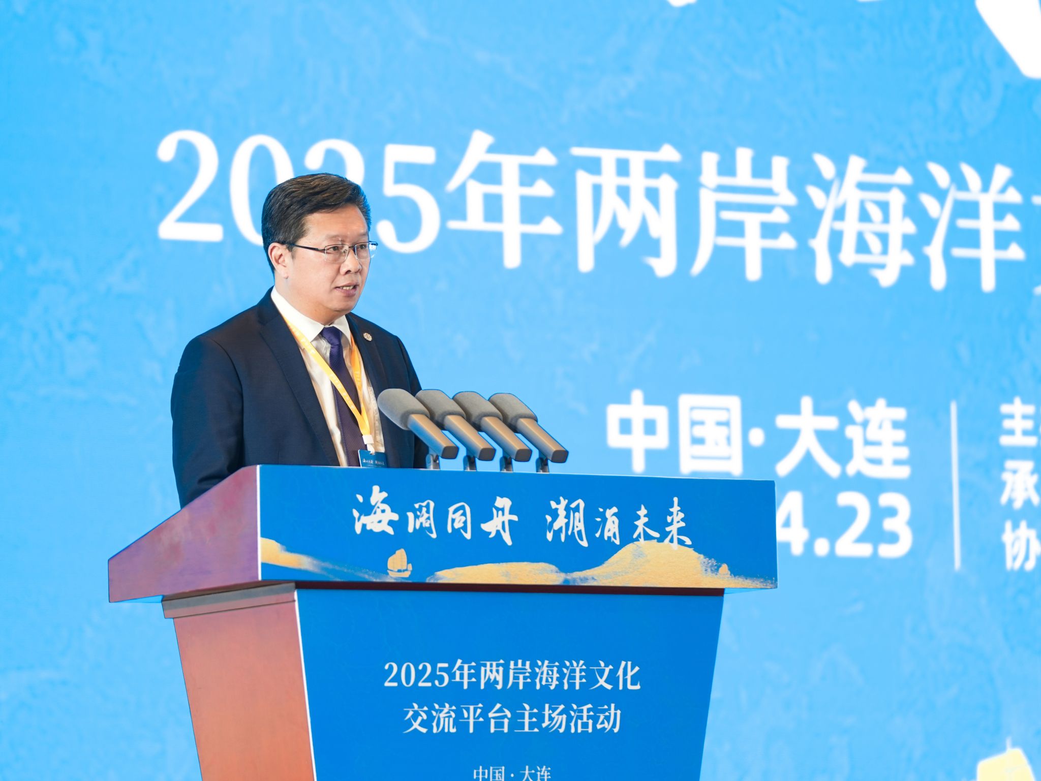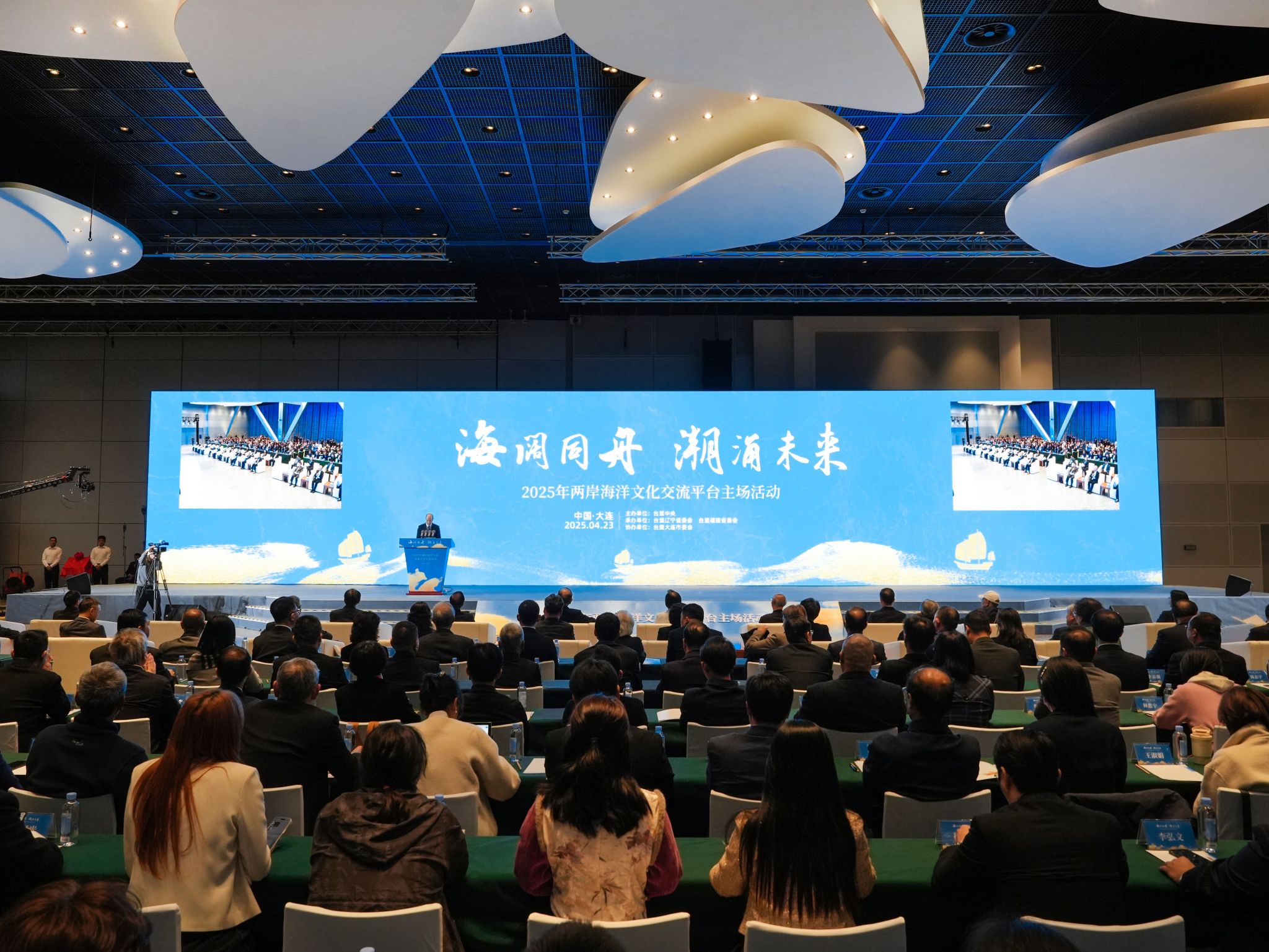 4月23日,台盟中央2025年两岸海洋文化交流平台主场活动在大连举办。活动以“海阔同舟 潮涌未来”为主题,两岸台胞、专家学者、代表性人士和青年学生等200余人共同与会。全国政协副主席、台盟中央主席苏辉,全国政协常委、港澳台侨委员会主任刘赐贵,中国国民党前副主席林丰正,中共辽宁省委常委、大连市委书记熊茂平出席开幕式并致辞。全国台联会长、台盟中央副主席郑建闽主持开幕式。