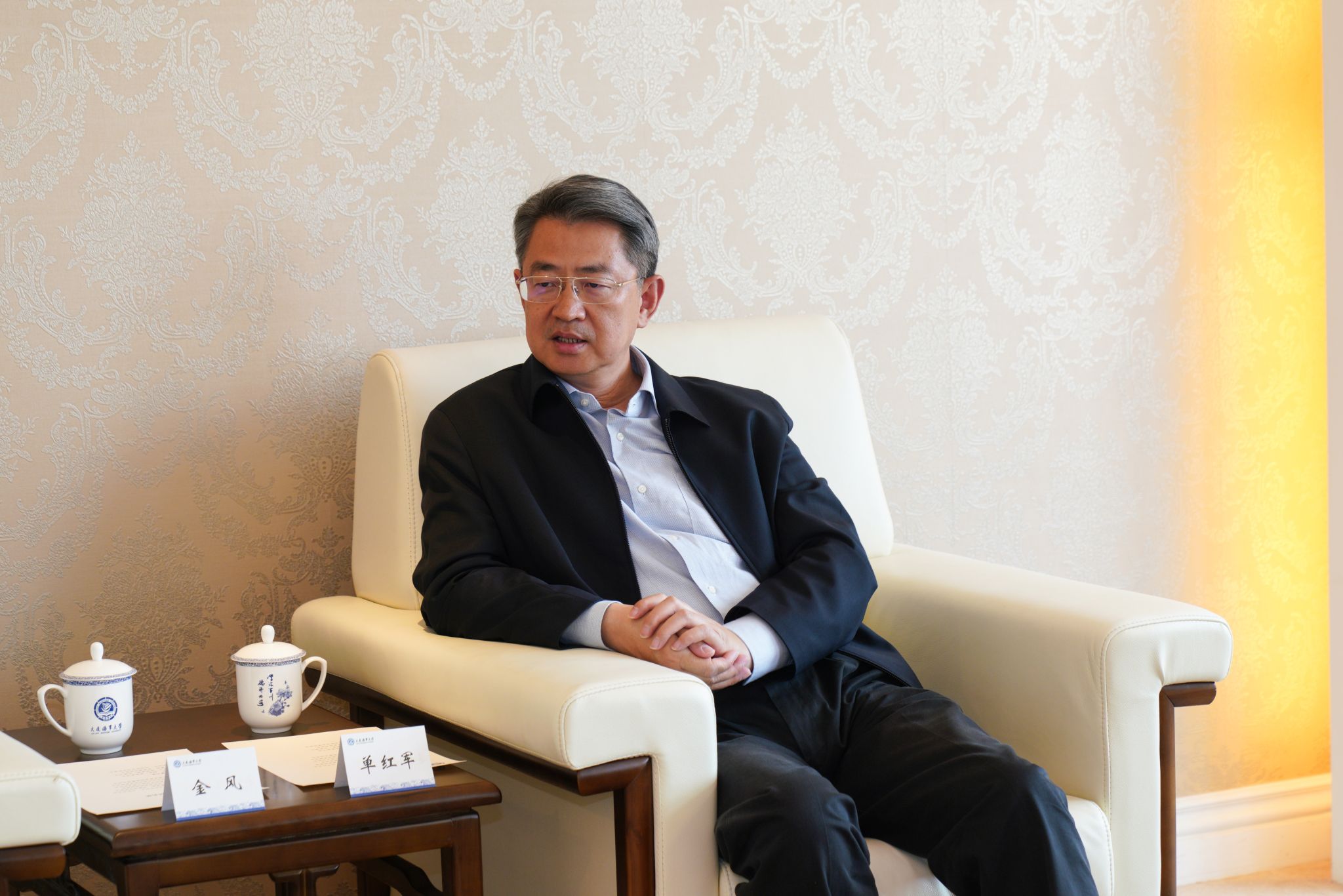 单红军代表学校对金风一行表示欢迎,对新华社辽宁分社长期以来给予学校的关心支持表示感谢。他表示,大连海事大学坚持立足航运特色,深度参与全球海事治理,致力于引领海事教育,近年来,学校在智库平台建设、智能船舶研究、绿色燃料转型、智慧港口建设等领域取得了积极成效,正在奋力推进研究型世界一流海事大学建设,希望双方进一步深化合作,为服务加快建设交通强国、海洋强国贡献力量。