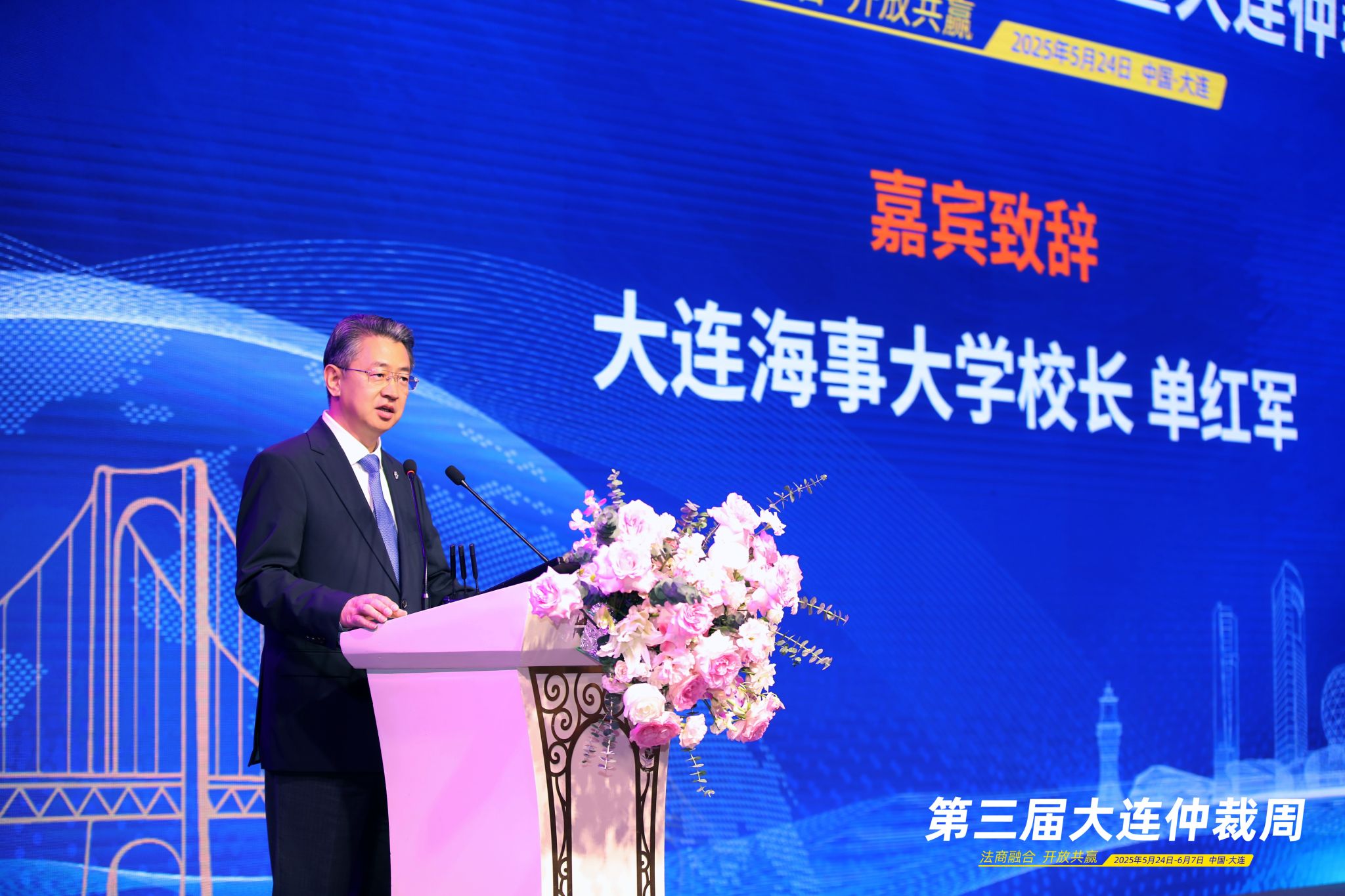 5月24日上午,第三届大连仲裁周开幕式暨大连仲裁峰会在连举办。我校校长单红军应邀出席开幕式并致辞。