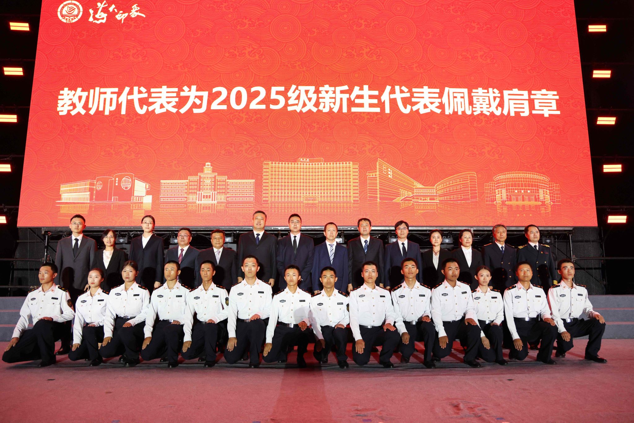 今年正值中国人民抗日战争暨世界反法西斯战争胜利80周年,各学院教师代表为来自全国主要抗日根据地所在省份地区的2025级新生代表佩戴肩章,激励新一代海大人牢记历史,用奋斗擦亮青春底色。