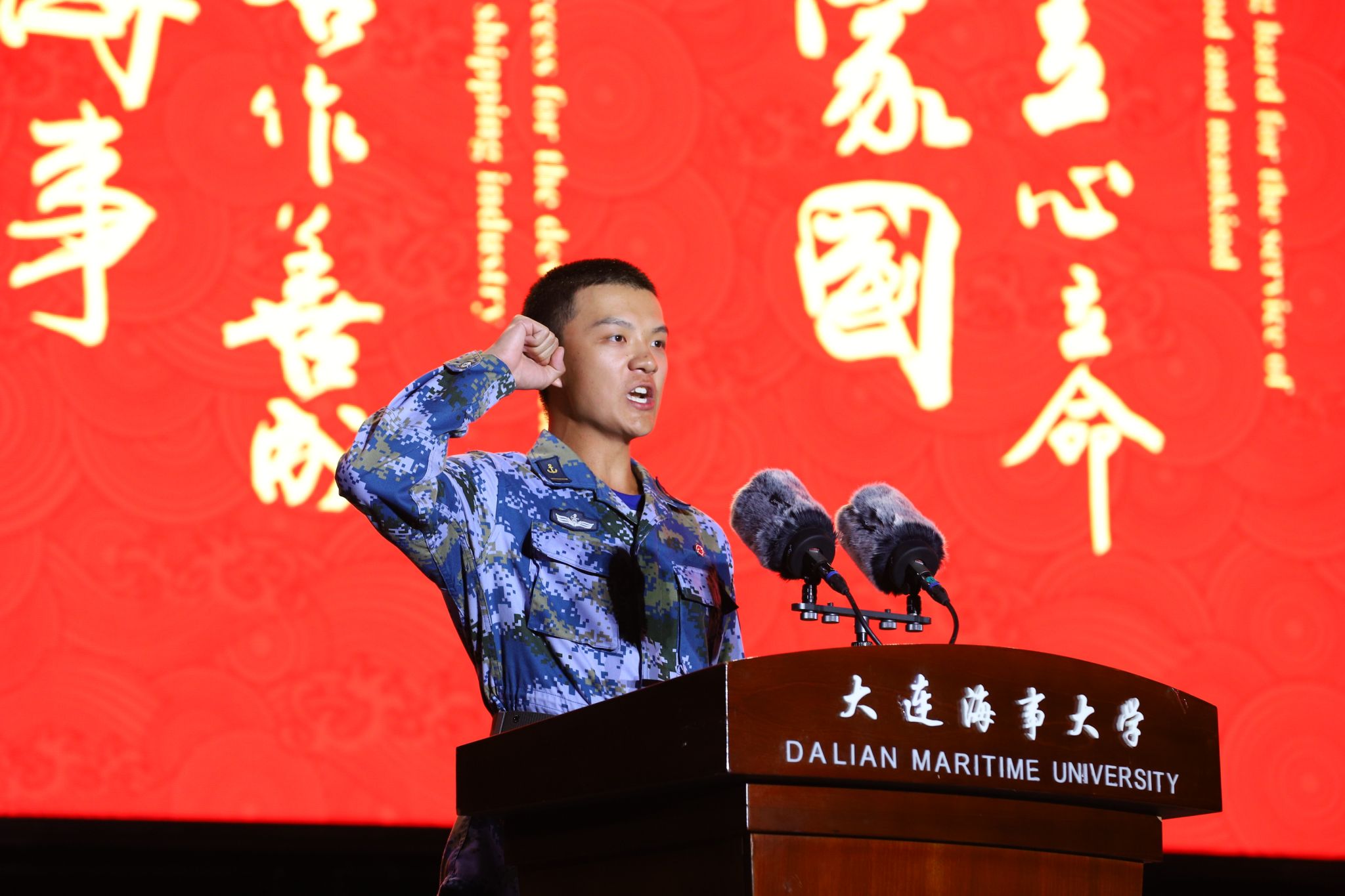 航海学院本科生新生王尚泽同学带领2025级同学们进行庄严宣誓。典礼在全场同学们坚定而有力的宣誓声中圆满结束。