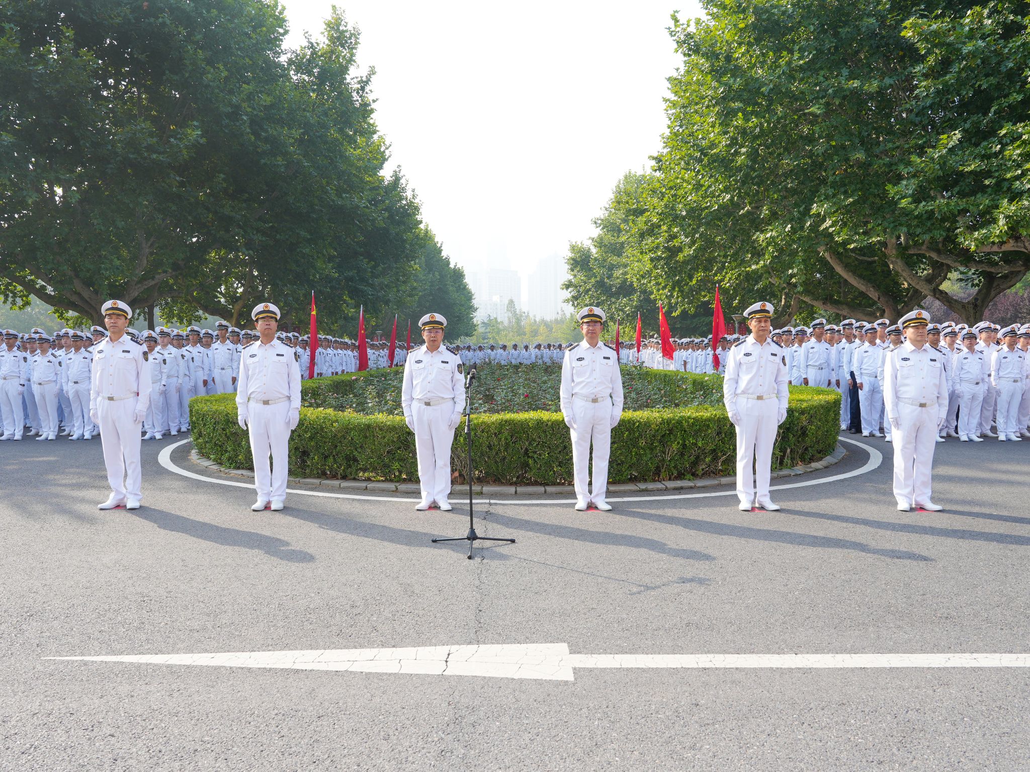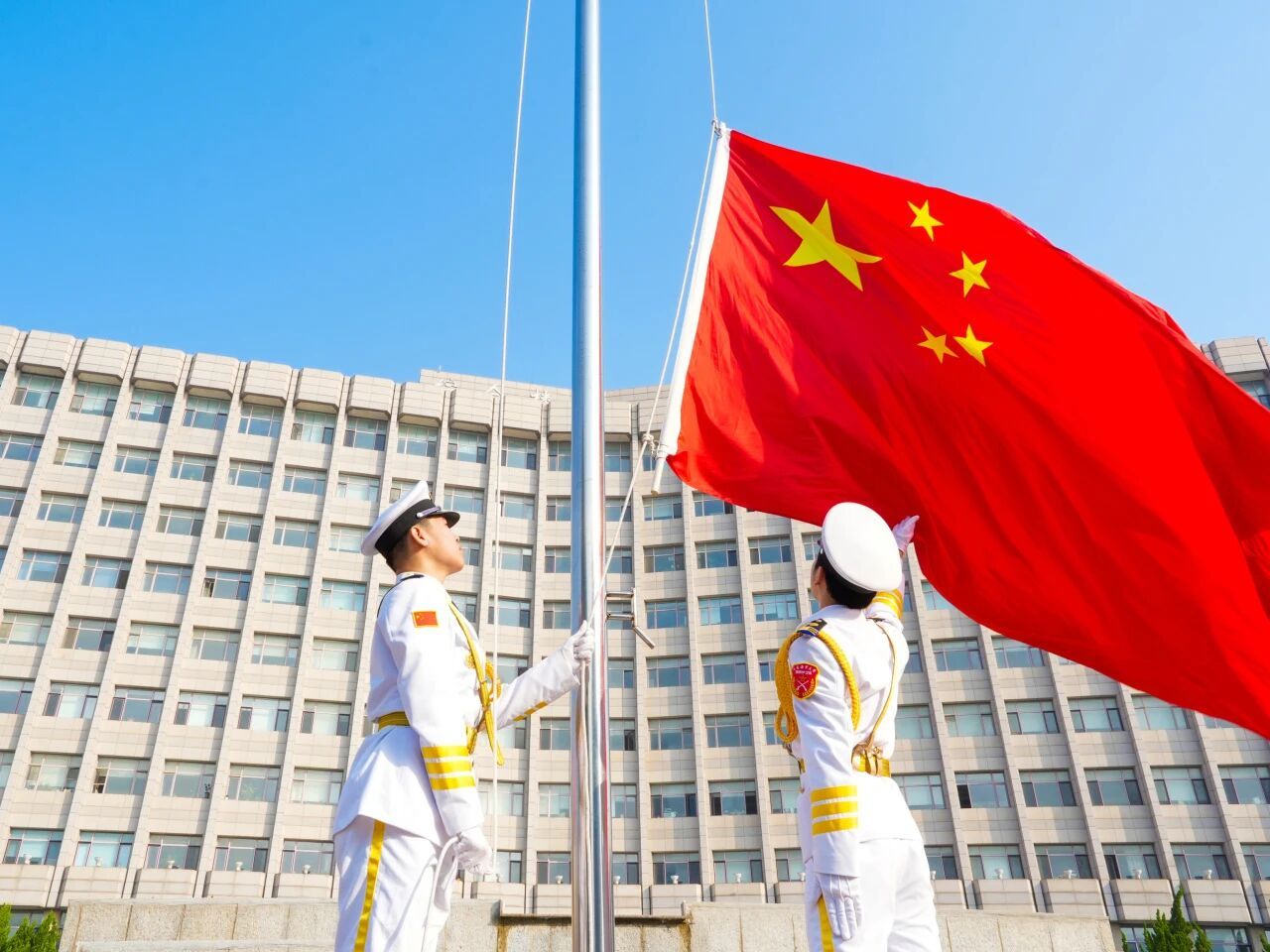 自1989年起,学校始终坚持每周一及重大节庆纪念日举行全校升国旗仪式,将其作为做好大学生思想政治教育的重要载体和育人平台。学校将升国旗仪式与半军事管理有机融合,通过在重要的时间节点对学生进行仪式教育,着力培养学生的家国情怀,汇聚爱国奋斗的海大青春力量。