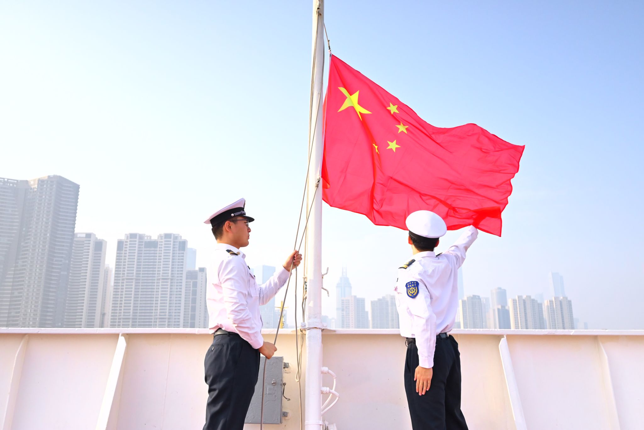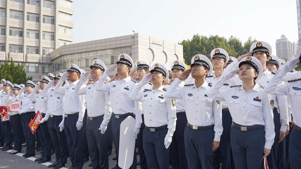 迎着朝阳,伴随着雄壮的《义勇军进行曲》,升旗手迎风振臂,鲜艳的五星红旗冉冉升起。全体人员满怀深情地向国旗敬礼,高唱国歌,表达对伟大祖国的无比热爱和由衷祝愿,共同庆祝中华人民共和国76周年华诞。