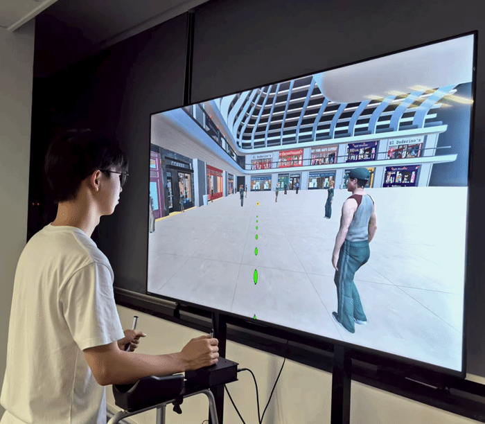 配套智能适配视觉训练平台利用全视野范围超高清实时场景渲染显示,开展级联棱镜助视器虚拟场景分级行走训练,对视野缺损人群进行渐进式视野扩展,实时采集多模态虚拟场景交互数据,自动量化评估视野扩展定向行走能力,提升视野扩展助视器视觉认知效果。同时,采集视野缺损人群特征数据,通过平台生成数字仿真患者,利用预训练通用大模型,在虚拟现实场景中进行多维度全方位行走碰撞仿真和视野扩展仿真,量化分析潜在碰撞风险,为视觉行为训练和助视器适配提供虚拟仿真验证参考。