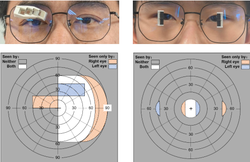 级联棱镜助视器针对视野缺损人群的视觉辅助成像需求,采用双反射光学设计和多模块光学级联构造,突破传统光学助视器扩展极限(约57棱镜度),实现了高棱镜功率扩展、高视觉清晰度的光学视野扩展(100棱镜度)。同时,针对光学助视器精准装配难点,实现了棱镜元件模块化制造、棱镜固定件增材制造,紧密契合眼部高精度三维模型,精确符合视野扩展设备严格公差,可以满足视野缺损人群个性化和阶段化的视野扩展需求。