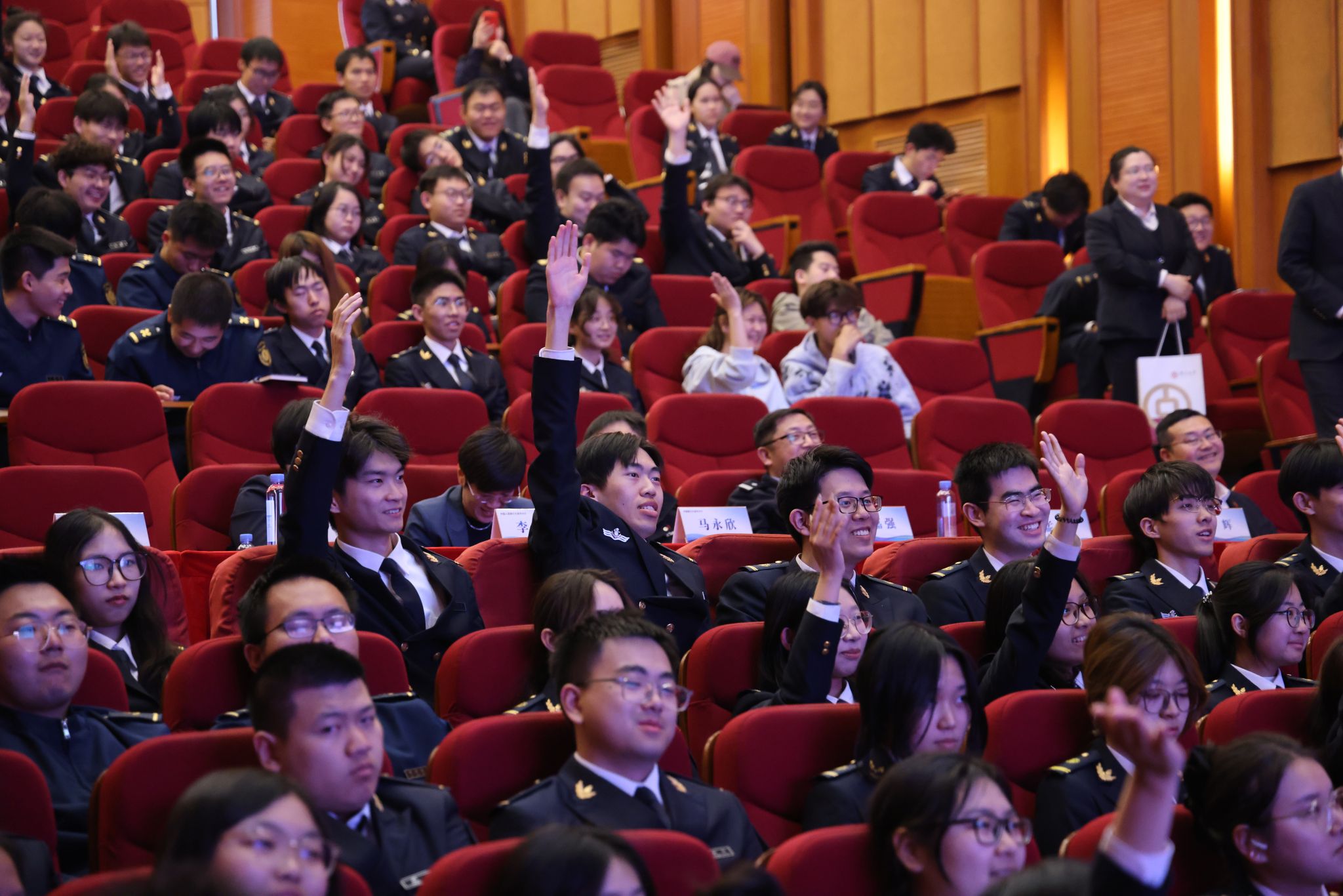 中国人民银行大连市分行支付结算处吴辉、反洗钱处李佳璐和大连市反诈中心刘睿分别围绕反诈、反洗钱和高校高发电信网络诈骗案例等内容作专题报告,并与学生进行问答互动,现场气氛活跃。