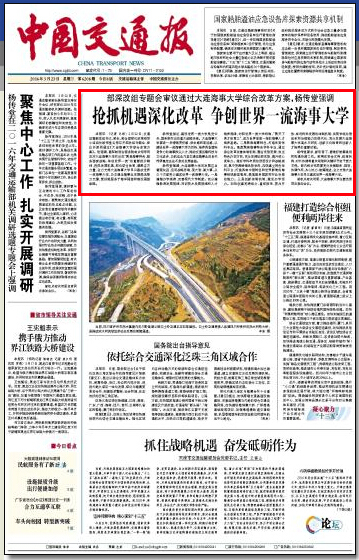人民网北京3月23日电 (赵英梓)昨日,交通运输部审议通过《大连海事大学综合改革方案》,交通运输部将在资金支持、政策扶持、对外协调等重点领域和关键环节给予更大支持,全力...