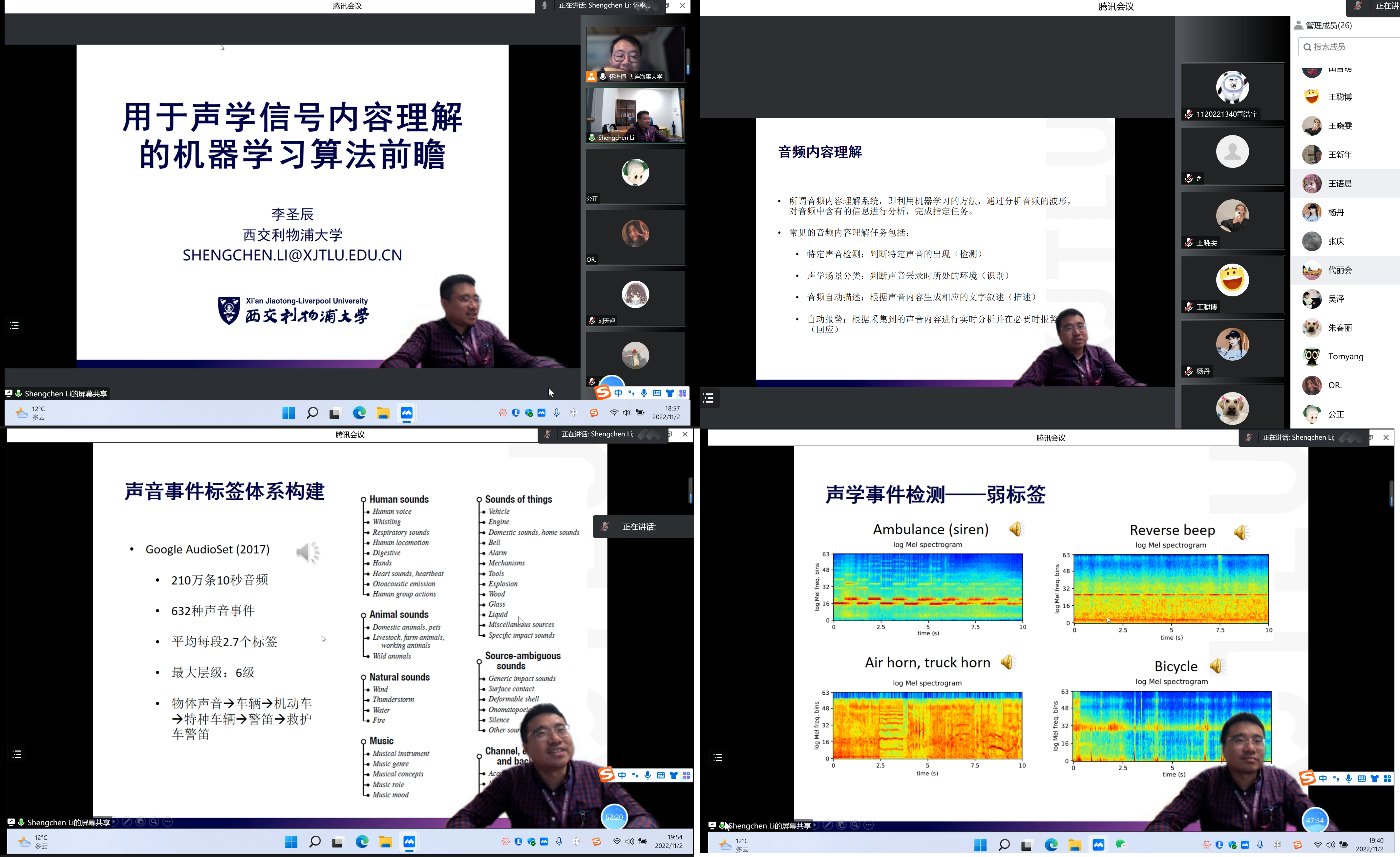 11月2日,由信息科学技术学院主办的主题为“用于声学信号内容理解的机器学习算法前瞻”的第33期青年学术沙龙在腾讯会议开展,来自西交利物浦大学的李圣辰助理教授和联合主讲...