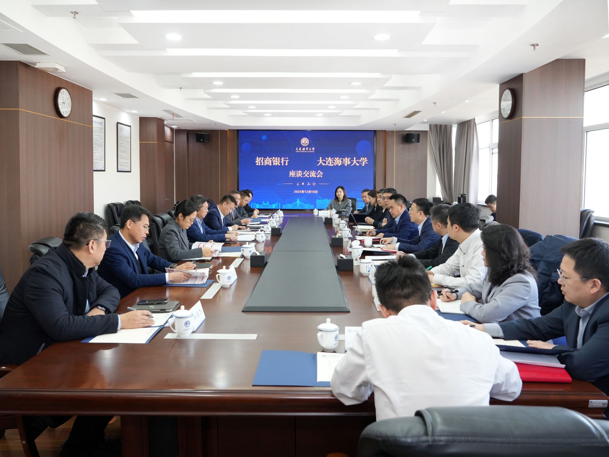 12月18日上午,招商银行大连分行党委书记、行长于泽增,招商银行总行机构客户部总经理助理王朝阳一行来访我校。校党委书记许民强在823会议室会见于泽增一行并座谈交流。许民强代表学校对招商银行大连分行长期以来在银校合作、党建联建、信息化建设、师生活动赞助等方面给予学校的支持帮助表示感谢。他指出,学校正全力推进“国内顶尖、世界一流研究型海事大学”建设,金融机构的专业服务是重要支撑。期待双方继续加深联系、深化情谊,...
