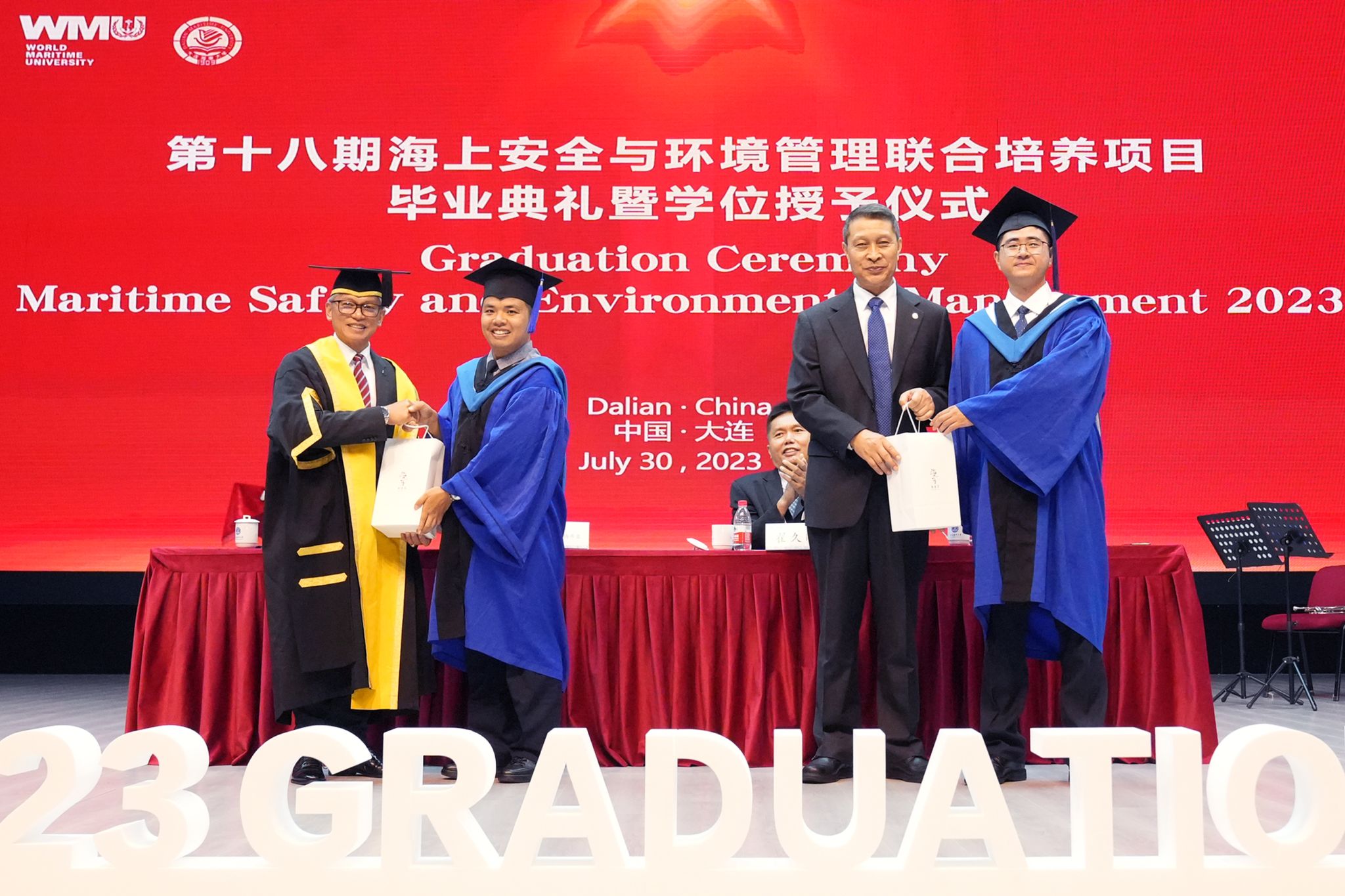 7月30日上午,大连海事大学与世界海事大学“海上安全与环境管理联合项目”(英文简称“MSEM项目”,中文简称“大马班”项目)第十八期毕业典礼暨学位授予仪式在大连海事大学东山礼堂隆重举行。世界海事大学校长Maximo Mejia、江苏海事局一级巡视员翟久刚、世界海事大学副校长马硕,大连海事大学副校长赵友涛,第十八期“大马班”学员及家属,第十九期“大马班”学员出席典礼。毕业典礼由马硕主持,本期共有47名学员顺利完成学业并获发世界海事大学理学硕士学位。...