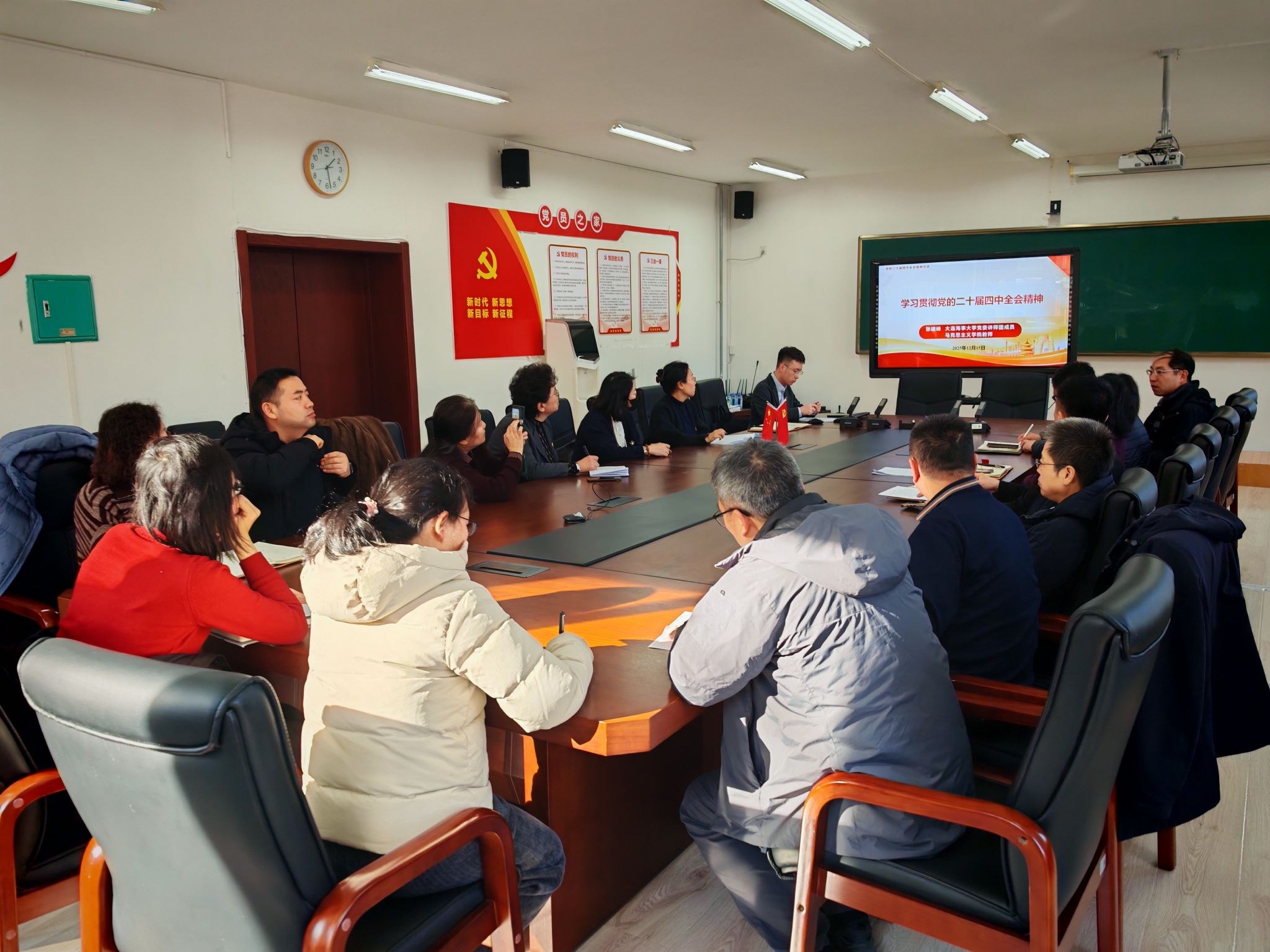 12月15日,继续教育学院党支部与网络信息与综合服务中心党支部在西山船员培训中心二楼会议室联合举办专题学习会,共同深入学习党的二十届四中全会精神。会议邀请马克思主义学院张建峰老师作专题辅导报告,全面、系统、深入地解读了全会的重要精神、核心要义与实践要求。张建峰在报告中系统解读了全会精神的指导思想、核心要义与重大方针政策。他结合当前国家战略与高等教育发展趋势,特别是围绕涉海领域的发展规划与政策导向进行了深入阐释,...