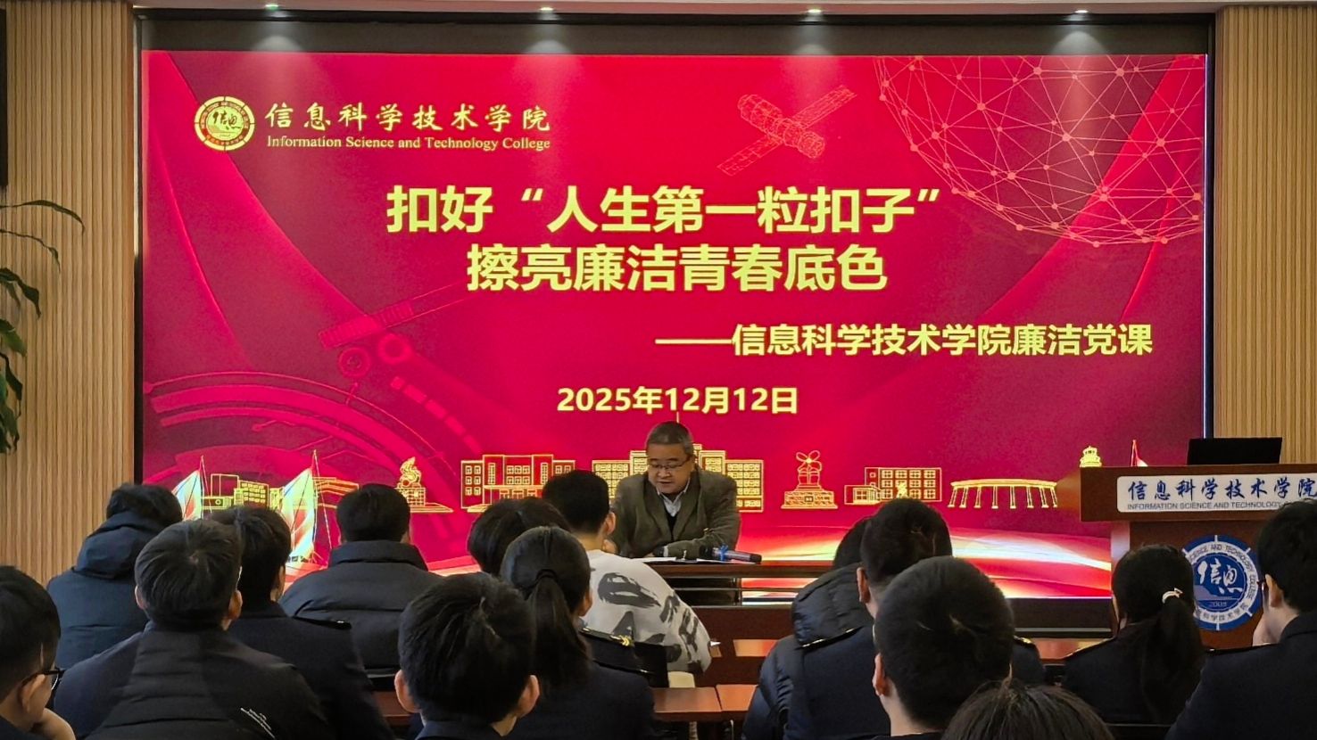 为引导新发展党员筑牢拒腐防变思想防线,系好廉洁自律“第一粒扣子”,近日,信息科学技术学院面向2025年下半年新发展党员开展廉洁专题教育。学院党委书记王义松以“扣好‘人生第一粒扣子’,擦亮廉洁青春底色”为主题,围绕“入党动机-学术信用-清正廉洁-守正创新”四个维度,通过理论探讨、案例解析和法规解读,助力新发展党员筑牢廉洁防线,在新时代征程中永葆政治本色,成为既精通技术又坚守学术伦理的栋梁之才。党课开篇强调了端正入党动机的重要性,...