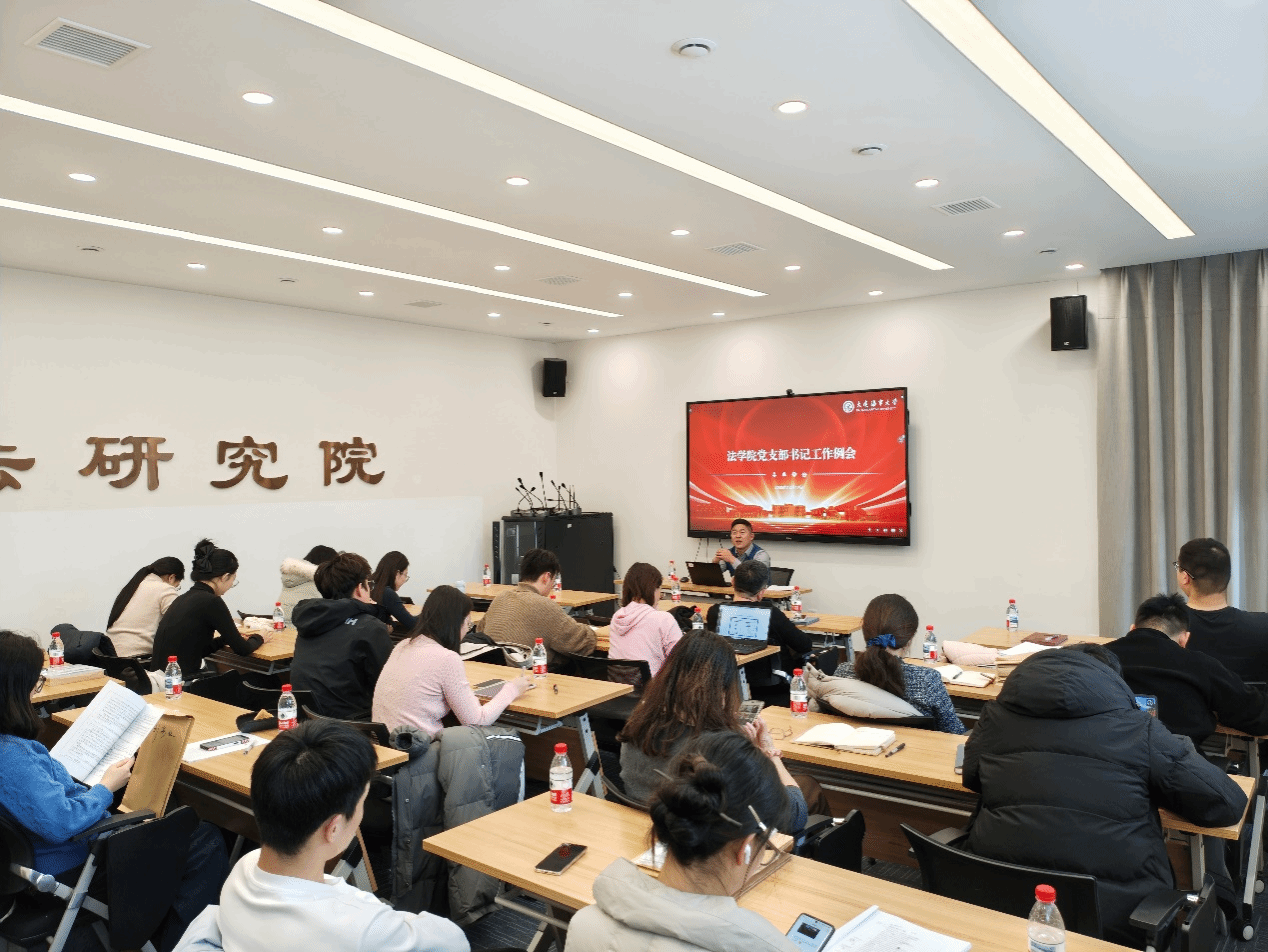 近日,法学院党委在中伦文德报告厅组织召开12月份党支部书记工作例会,党务办公室主任李俊英、各党支部书记及党建服务中心各部门成员参会,会议由李俊英主持。会上,李俊英就近期学院党建重点任务进行部署。一是明确党支部书记工作述职要求,强调各党支部书记要高度重视,确保述职报告要点全面、内容规范、重点突出。二是要认真学习《中国共产党党徽党旗条例》,进一步加强支部党员对党旗党徽及党员徽章的规范使用。三是要对本次申报全国“...