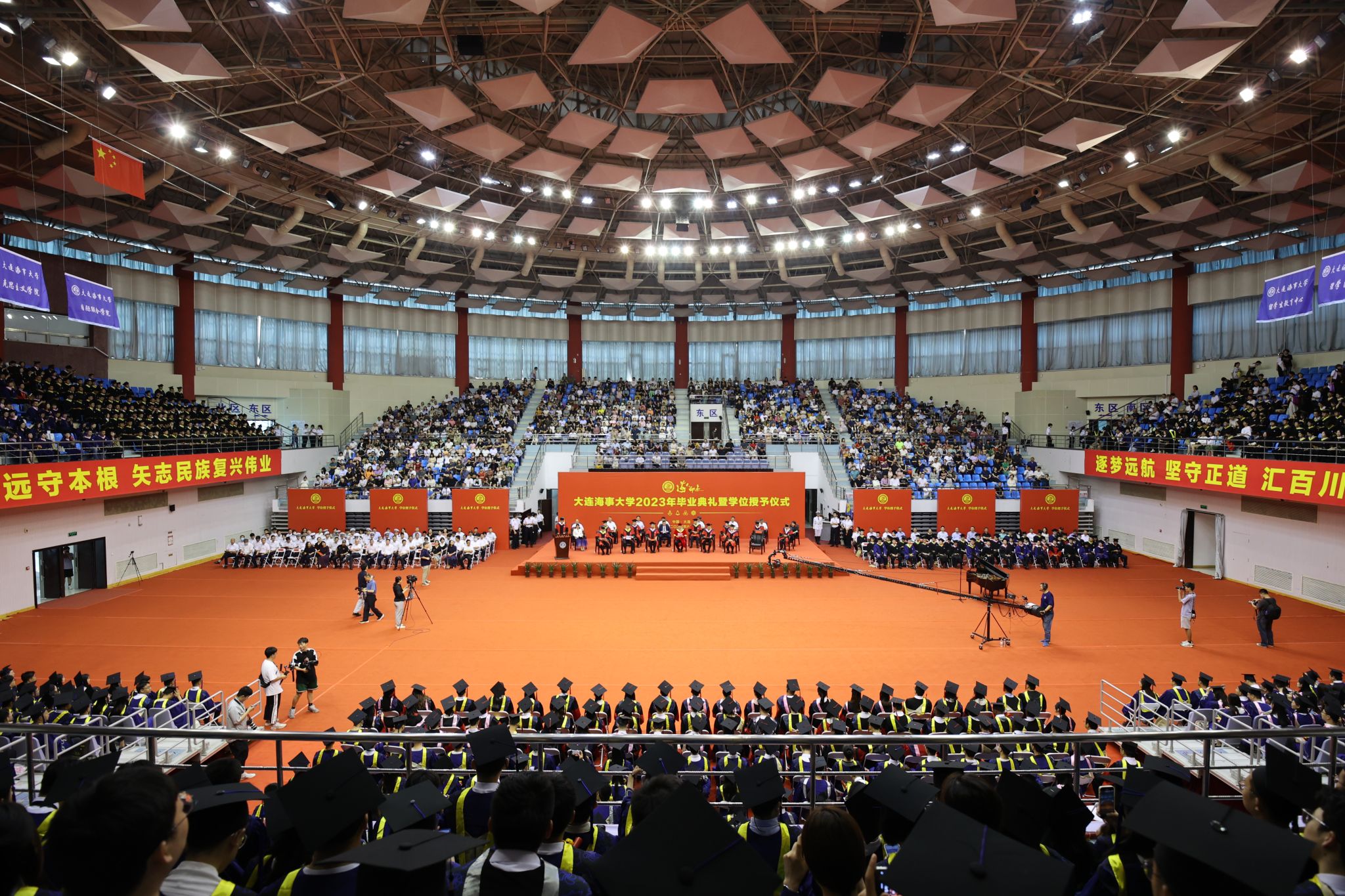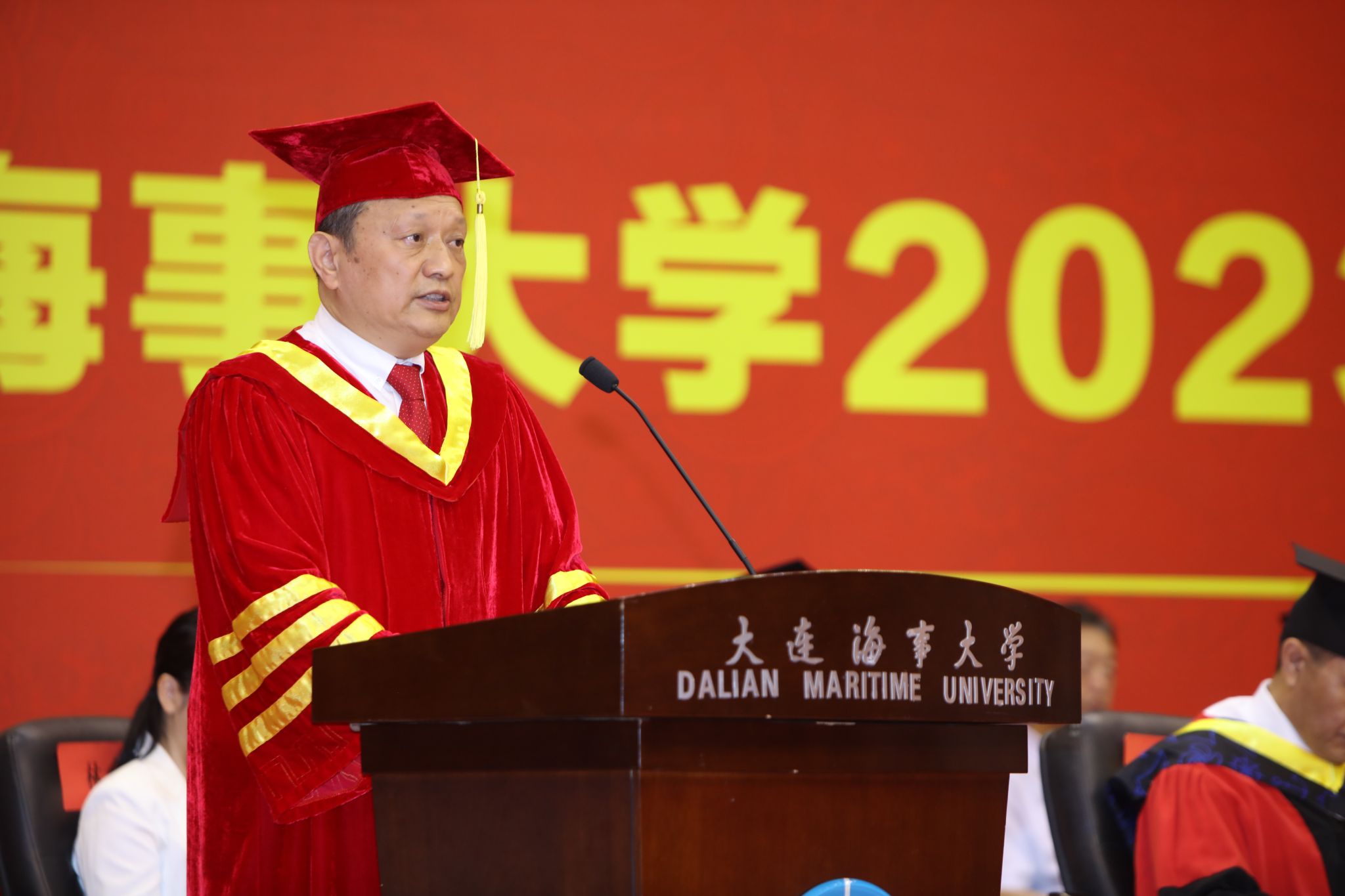 6月27日,大连海事大学“海大•印迹”—2023年毕业典礼暨学位授予仪式在体育馆隆重举行。校领导孙玉清、许民强、罗钟山、赵友涛、王小勇、赵宝刚、初北平,我校1994届校友、华洋海事中心有限公司总经理李立谦先生,以及学校学位评定委员会成员代表、各学院党政负责人、机关职能部门负责人、教辅等相关单位负责人、教师代表、嘉宾代表、学生工作干部和2023届毕业生出席典礼。毕业生家长亲友和2020-2022届未能现场参加毕业典礼的毕业生受邀参加毕业典礼。...