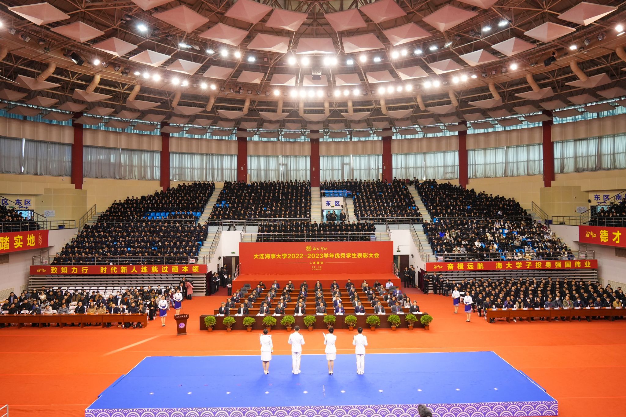 为落实立德树人根本任务,推进“三全育人”“五育并举”人才培养综合改革走深走实,激励更多学生德智体美劳全面发展,12月2日上午,大连海事大学2022-2023学年“海大·印心”优秀学生表彰大会在体育馆举行,对评选出的先进集体和优秀学生代表进行表彰。2022-2023学年,学校共评选学生奖助学金和荣誉称号106项,奖励和资助学生15736人次,表彰学生先进集体1765个,学生累计获得国家、学校、企事业单位、社会团体及个人设立的奖助学金资助总额为6845....