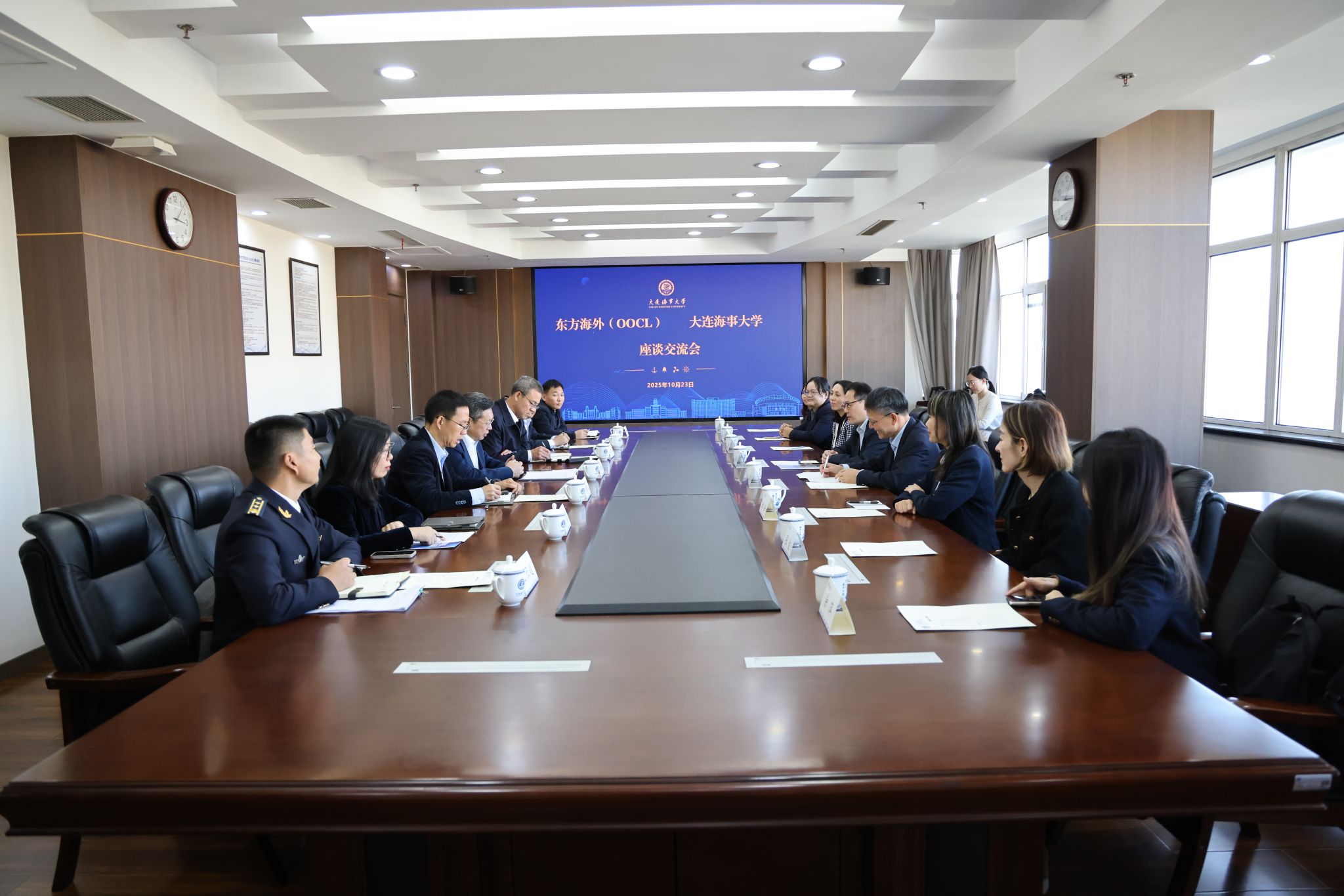 10月23日下午,东方海外人力资源部总经理黎祥光、中国公司董事总经理檀卓群一行来访我校,学校党委书记许民强、副校长赵宝刚会见黎祥光一行并座谈交流。许民强代表学校对黎祥光、檀卓群一行的到来表示欢迎。他介绍了学校学科建设、人才培养、科技创新、服务行业及毕业生概况等内容。他表示,东方海外引领行业数智化转型,率先应用区块链电子提单、智能集装箱追踪等创新技术,在可持续发展领域的表现持续保持行业领先地位。一直以来学校深度融通行业,...