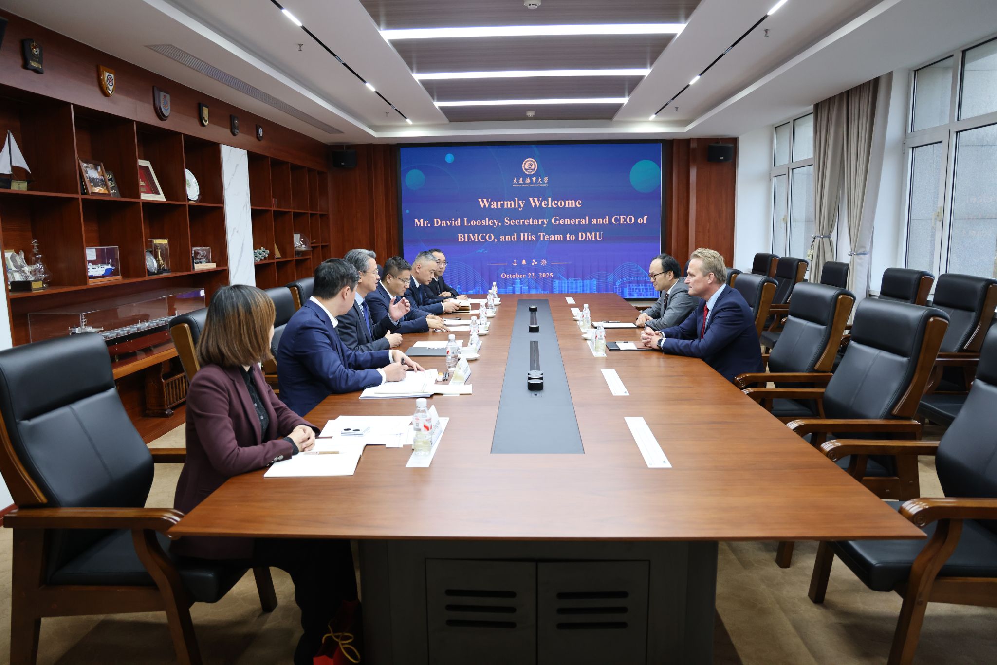 10月22日下午,波罗的海国际航运公会(BIMCO)秘书长兼首席执行官大卫·卢斯利、亚太区总经理庄炜访问我校,校长单红军会见大卫·卢斯利一行。单红军代表学校对大卫·卢斯利一行表示欢迎并简要介绍了学校的历史沿革、办学特色、人才培养及国际交流等情况。他表示,BIMCO作为全球知名的国际航运组织,在全球航运业绿色转型进程中发挥着重要作用,面对行业变革带来的挑战和机遇,期待双方在智能航运人才培养、科技创新、行业标准制定等领域进一步深化合作,...