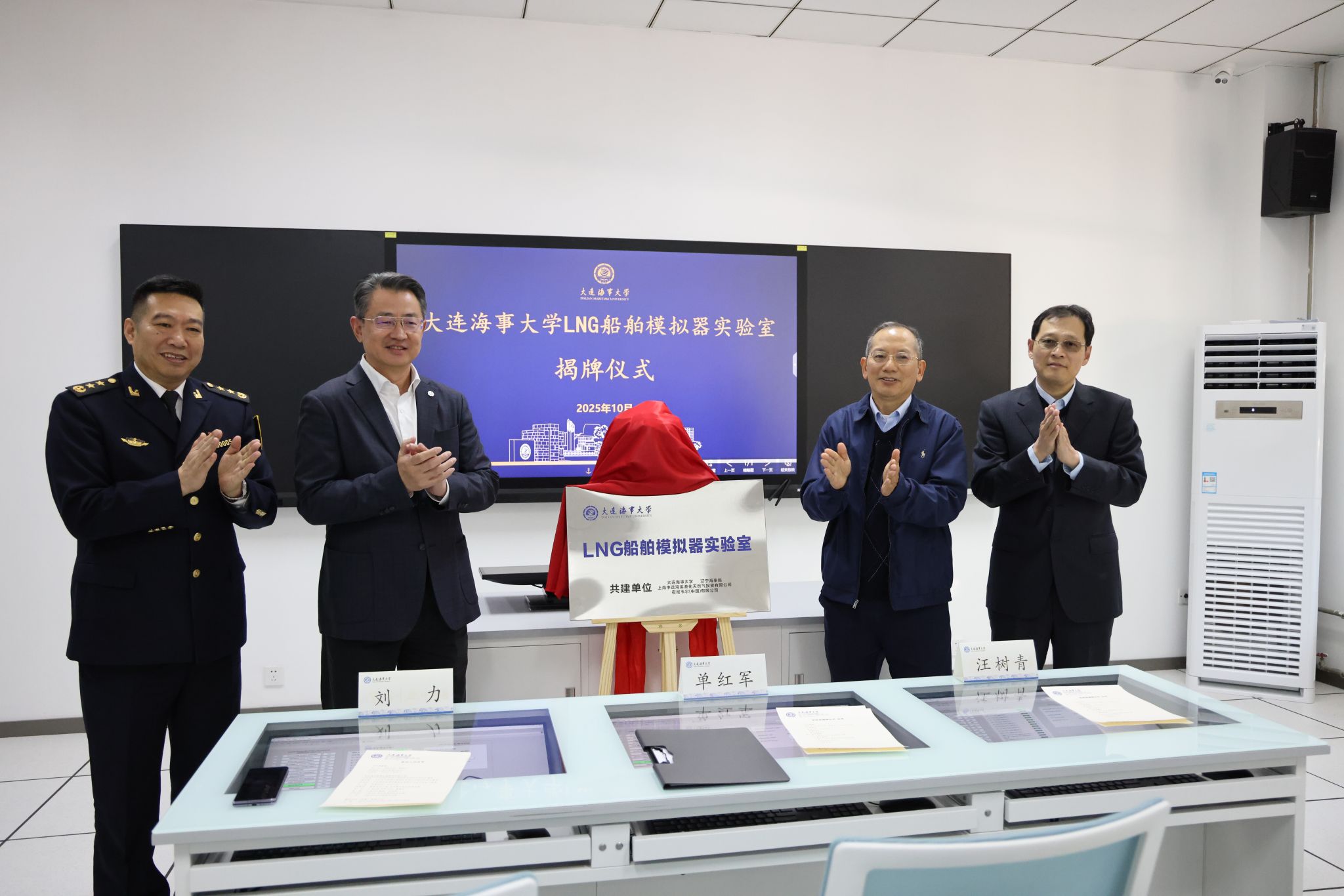 10月24日下午,“LNG船舶模拟器实验室”揭牌仪式在我校举行。辽宁海事局副局长刘力,中远海运能源股份有限公司总会计师田超、非执行董事汪树青,中远海运能源运输股份有限公司独立非执行董事黄伟德、赵劲松,霍尼韦尔(中国)有限公司自动化事业部中国区总经理王晋,校长单红军出席仪式。仪式由副校长曾庆成主持。单红军、刘力、汪树青、王晋共同为“LNG船舶模拟器实验室”揭牌。单红军代表学校,向LNG船舶模拟器实验室正式揭牌表示祝贺,...