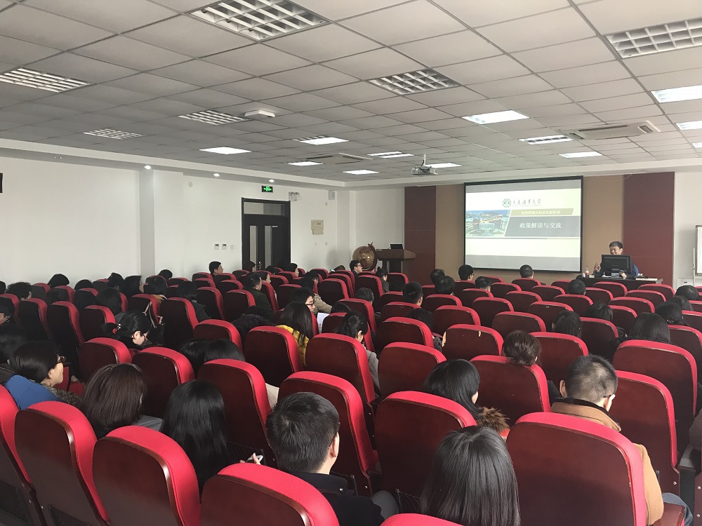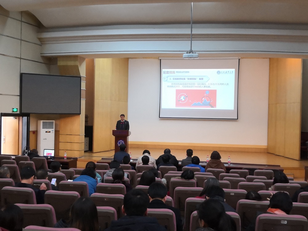 3月21日,副校长刘正江在外语楼105报告厅为外国语学院全体教师宣讲了校院两级目标责任制管理。人事处处长邢繁辉、教务处处长吴桂涛、科技处副处长王勇陪同参会。会议由外国语学院党委书记徐斌主持。刘正江从目标管理实施背景、目标管理实施方案、配套政策与措施三大方面为大家进行了详细解读,他要求学院全体教师凝聚思想共识、制度共识、行动共识,积极配合校院两级目标责任制管理制度,团结协作,坚定向前,为学校“双一流...