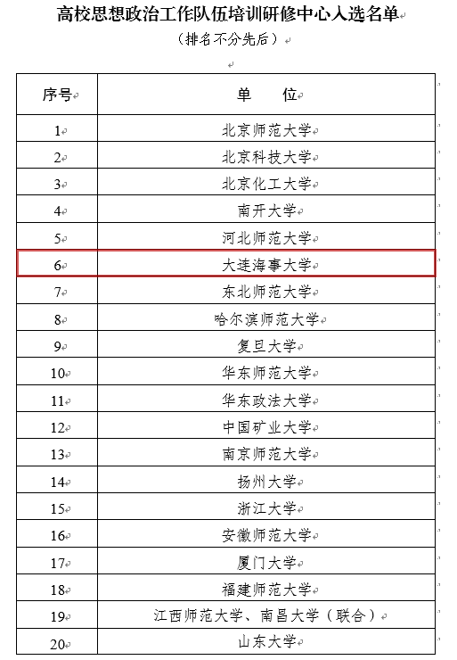 日前,教育部正式公布高校思想政治工作队伍培训研修中心建设高校名单,全国有40所高校入选,我校成为辽宁省唯一入选高校。教育部开展高校思想政治工作队伍培训研修中心建设工作旨在深入学习贯彻习近平新时代中国特色社会主义思想和党的十九大精神,全面贯彻落实全国高校思想政治工作会和《中共中央国务院关于加强和改进新形势下高校思想政治工作的意见》精神,推动《普通高等学校辅导员队伍建设规定》(教育部43号令)落地落实...