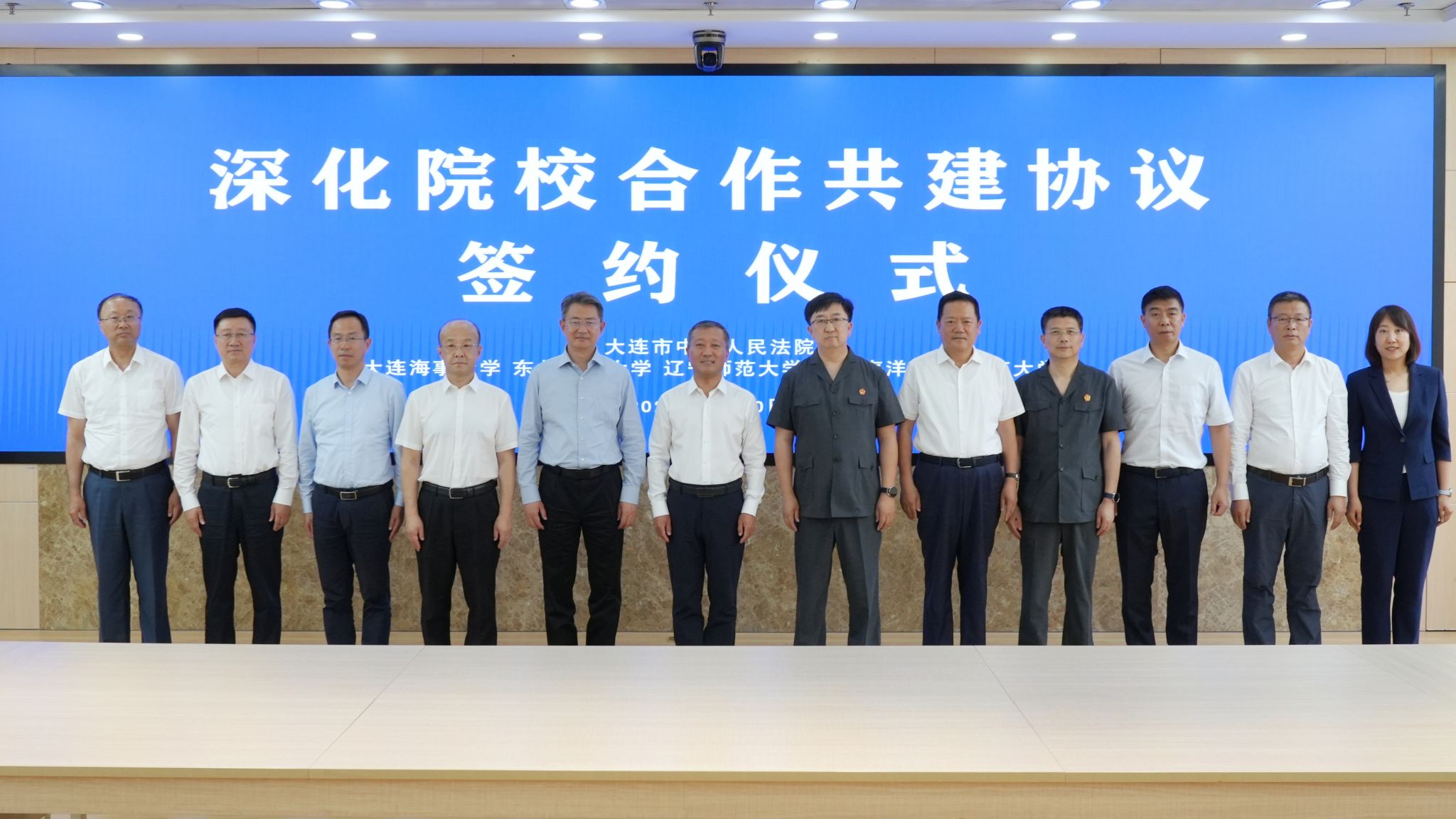 6月20日下午,我校及东北财经大学、辽宁师范大学、大连海洋大学、大连大学与大连市中级人民法院共同签署深化院校合作共建协议,校长单红军应邀出席签约仪式并致辞。单红军表示,大连市中级人民法院拥有丰富的法律实践经验、丰富的人力资源以及海量的案例资源,非常有助于法学的实践教育。本次院校合作共建协议的签署,是一次以实践为导向的法学教育改革的积极探索和生动实践。他强调,复合型、应用型法治人才培养是一项系统工程,需要高校与司法机关同频共振、...